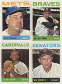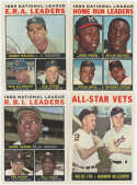 A very sharp and fine overall lot, this is just 19 cards from a full set. The high number run is missing just Niekro and Uecker. The cards are about 70% Near Mint or better to our eyes. The balance tend to be Ex-Mt or Near Mint but slightly off-center. Slabbing is a real possibility here, there are many cards that appear to be quite sharp. These better cards are included in the lot: 1 Koufax LL, 9 Aaron/Mays LL, 35 E Mathews, 103 Curt Flood, 120 Drysdale, 128 Lolich RC, 155 Snider, 167 Piniella RC, 177 Killebrew, 230 B Robby, 244 LaRussa RC, 260 F Robby, 287 Conigliaro RC, 306 Mays/Cepeda, 342 Stargell, 350 McCovey, 380 Ford, 390 Cepeda, 433 Yanks TC, 460 Gibson, 468 G Perry, 531 Dodgers TC, 538 Minoso, 540 Aparicio, 547 Hodges, 550 Ken Hubbs, 561 R Wise RC, 567 Kaat, 570 Mazeroski, 579 Red Sox TC, 586 Piersall, 587 Daniels.