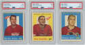 A VG-Ex overall set, this has mild condition variance, mainly down to VG. A very uncommon set, we rate the key cards as follows: 15 Gump Worsley VG-Ex/Ex, 23 Johnny Bucyk VG, 32 Glenn Hall VG, 35 Al Arbour PSA 4, 42 Terry Sawchuk PSA 3, 47 Bobby Hull PSA 5 mc, 48 G.Howe/Jack Evans IA PSA 4, 63 Gordie Howe PSA 4.