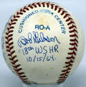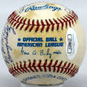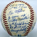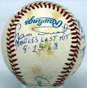 A very interesting piece, this baseball is signed by Bob Gibson, Randy Gumpert, Louis Tiant, Barney Schultz and Stu Miller. All of the pitchers added inscriptions noting the key home runs they gave up to Mickey Mantle. This is a neat item to add to an advanced Mantle autograph collection.