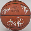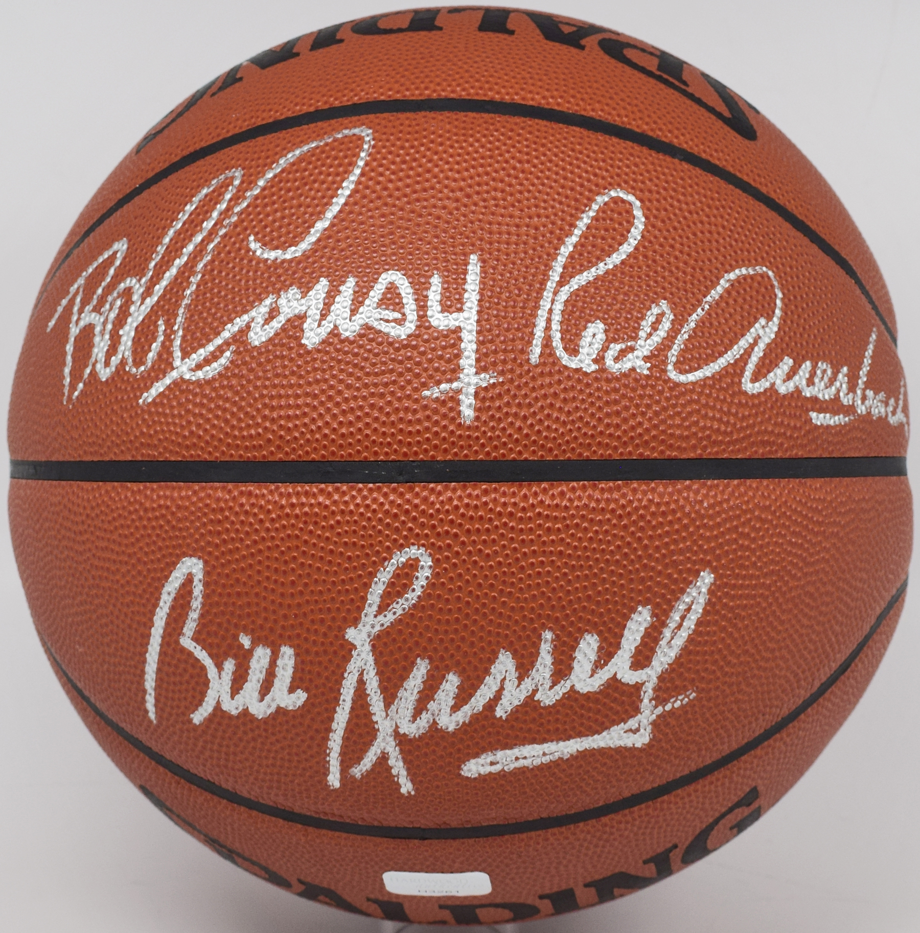 Perfect quality, this has a Hardwoods Authentics hologram. The signers, all HOFers, are Bill Russell, Bob Cousy, Red Auerbach, Larry Bird, Kevin McHale and Robert Parish. This comes with a photo from when this was signed and has a PSA DNA sticker for authentication. Superb.