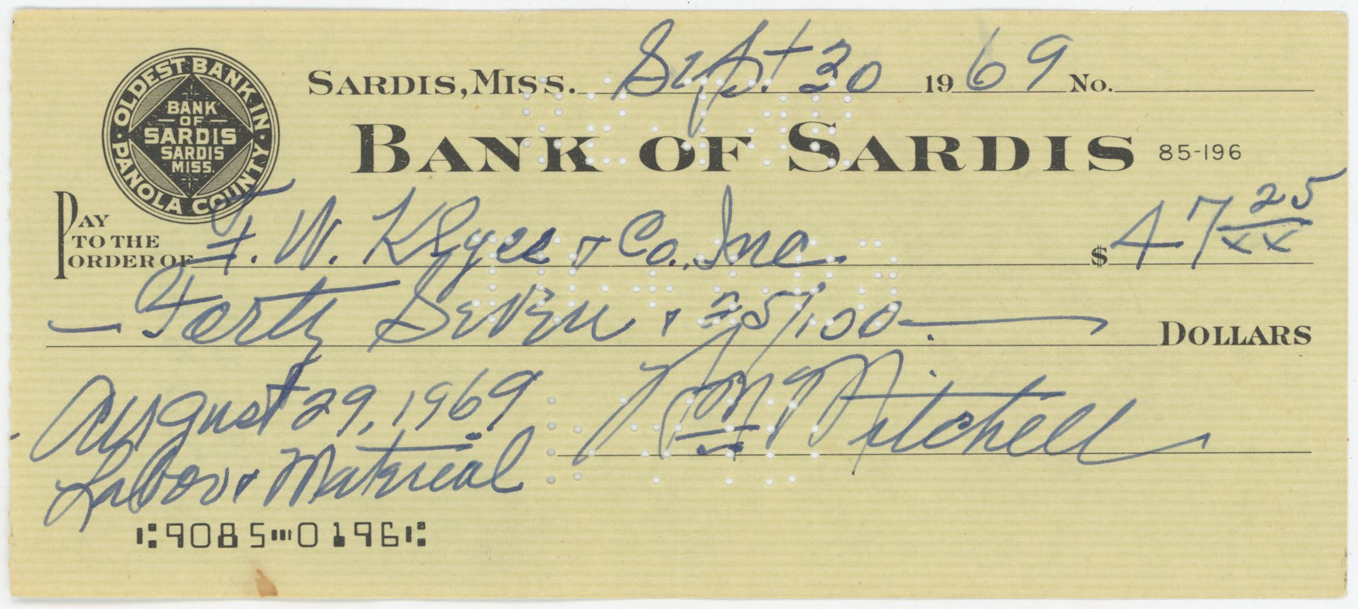 Check Mitchell, Willie 1969 Check (first pitcher to strike out Babe Ruth) 9.5