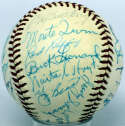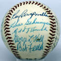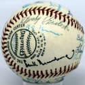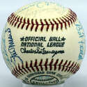 From the mid-1970s, this is a clean ONL Feeney model from the 1973-1976 era. Signed at a HOF induction, the HOFers include Berra, Greenberg, Grimes, Hoyt, Judy Johnson, Marquard, Musial, Roush, Ruffing, Terry and L. Waner. The Campanella signature is clubhouse as always.