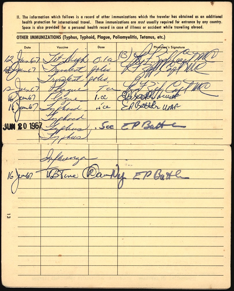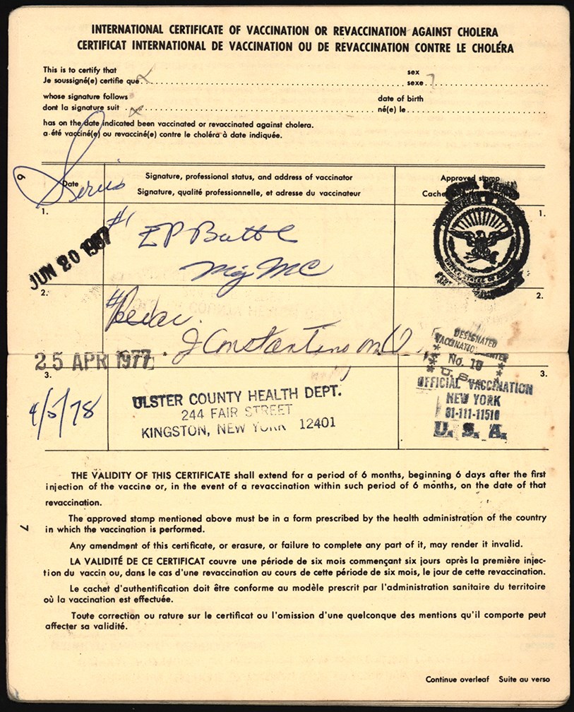 1977 Floyd Pattersons International Certificates of Vaccination Book (undated)