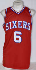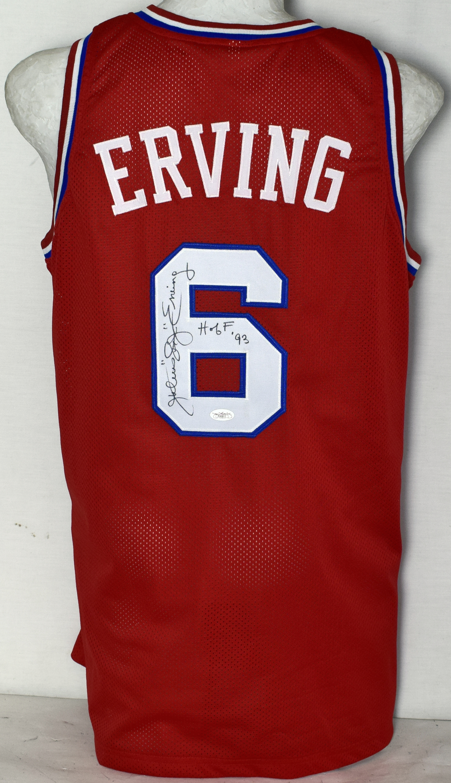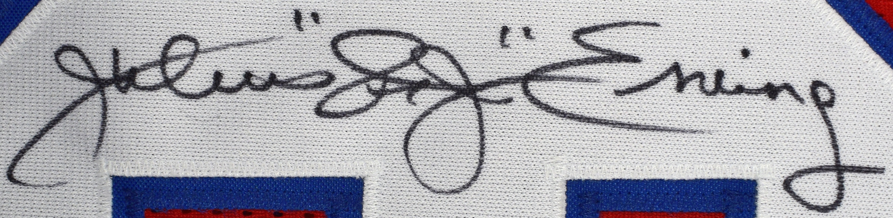 Jersey Erving, Julius Signed Philadelphia 76ers Jersey w/HOF Inscription (JSA sticker) 9.5
