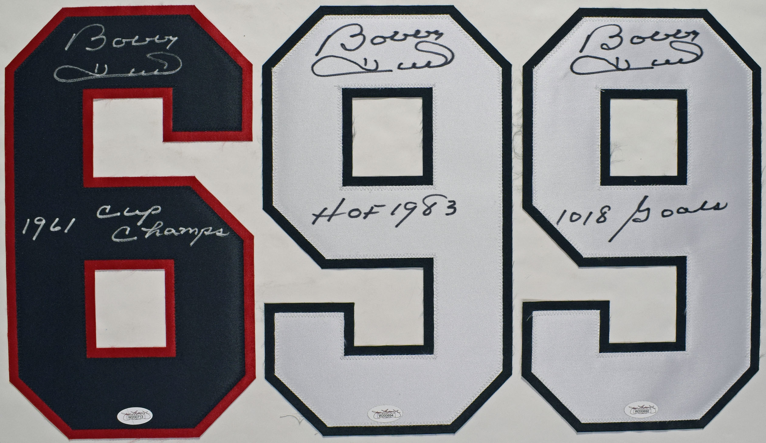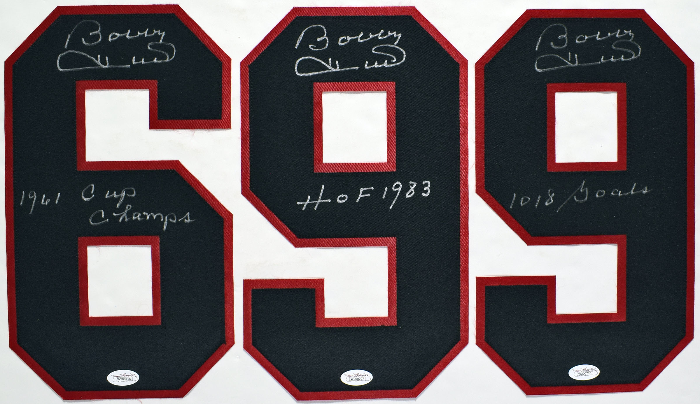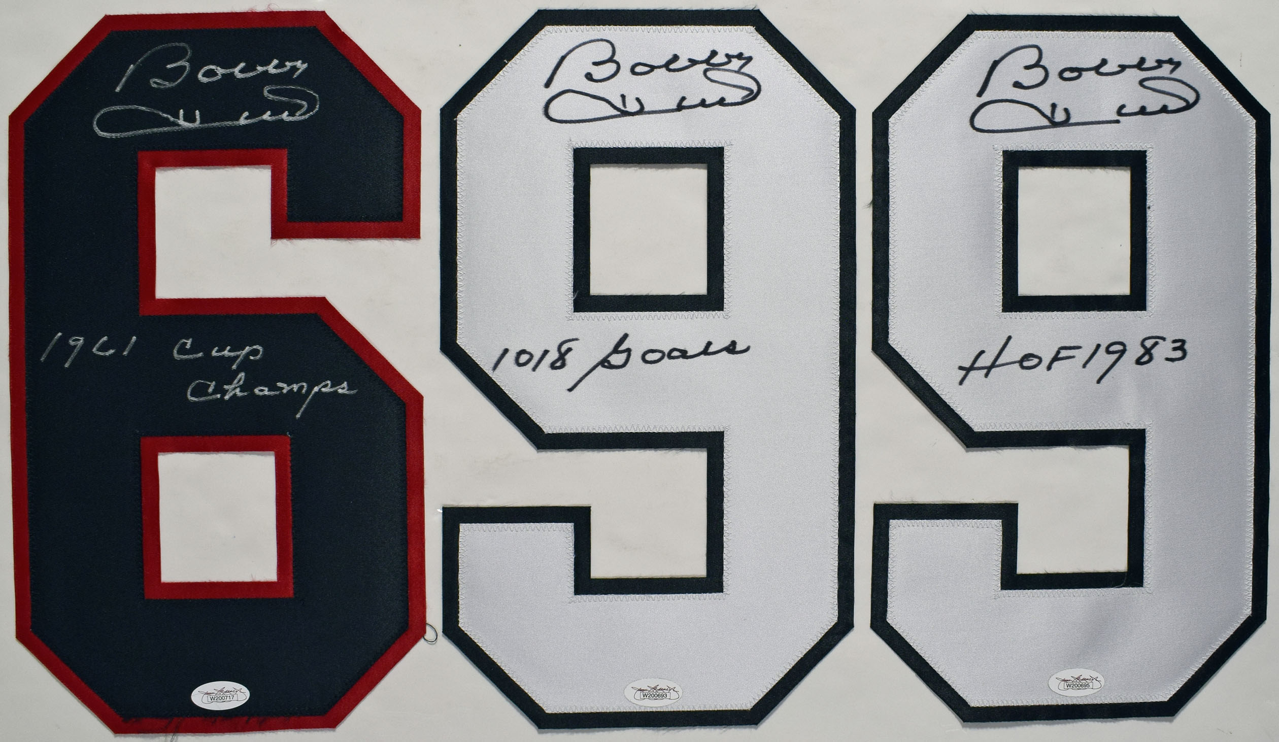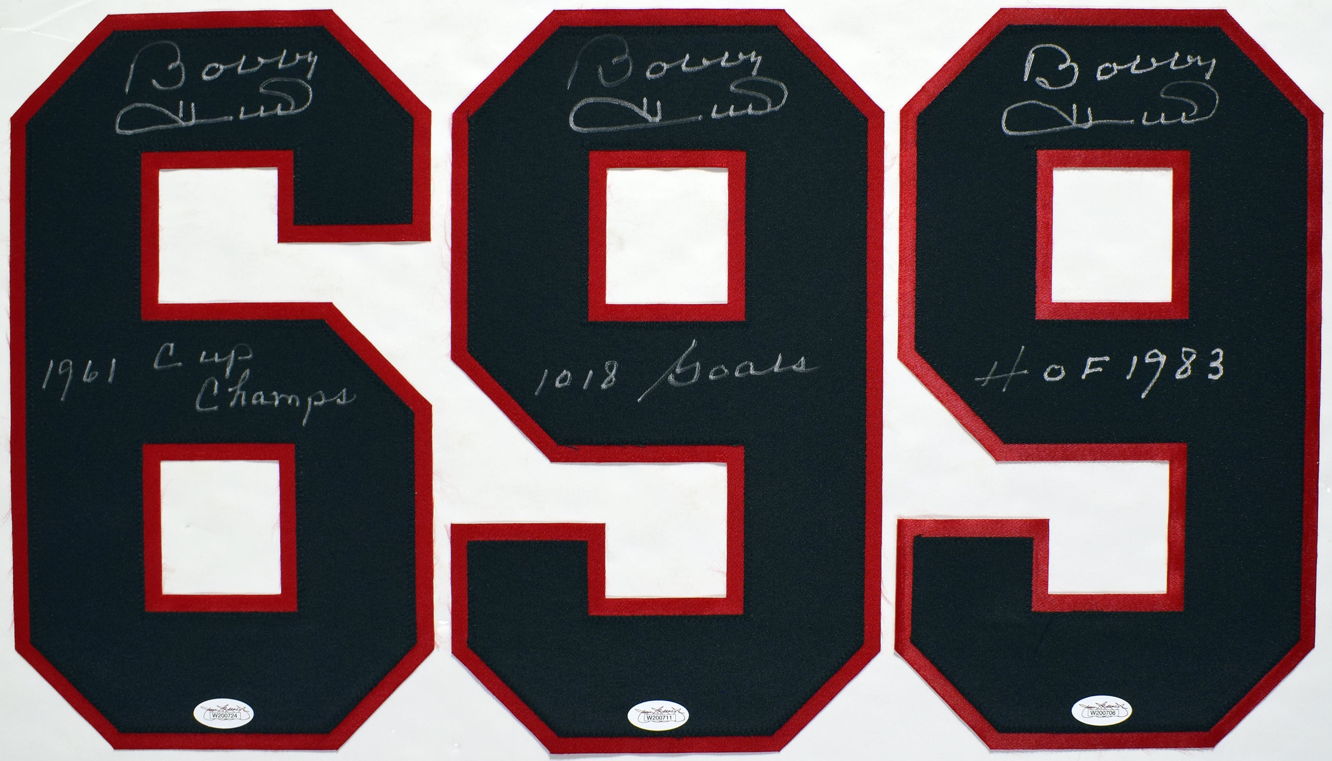 Jersey Hull, Bobby Signed Uniform Number Trio w/inscriptions 9.5