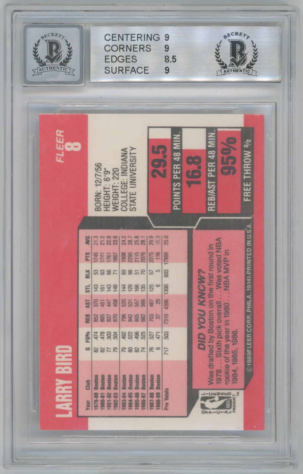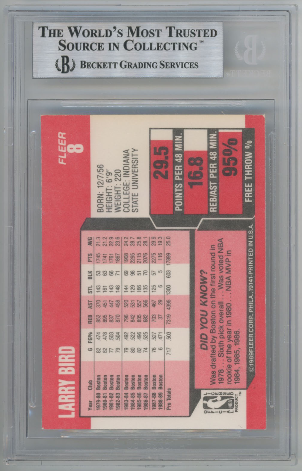 1989 Fleer 8 Larry Bird - Beckett Slabbed