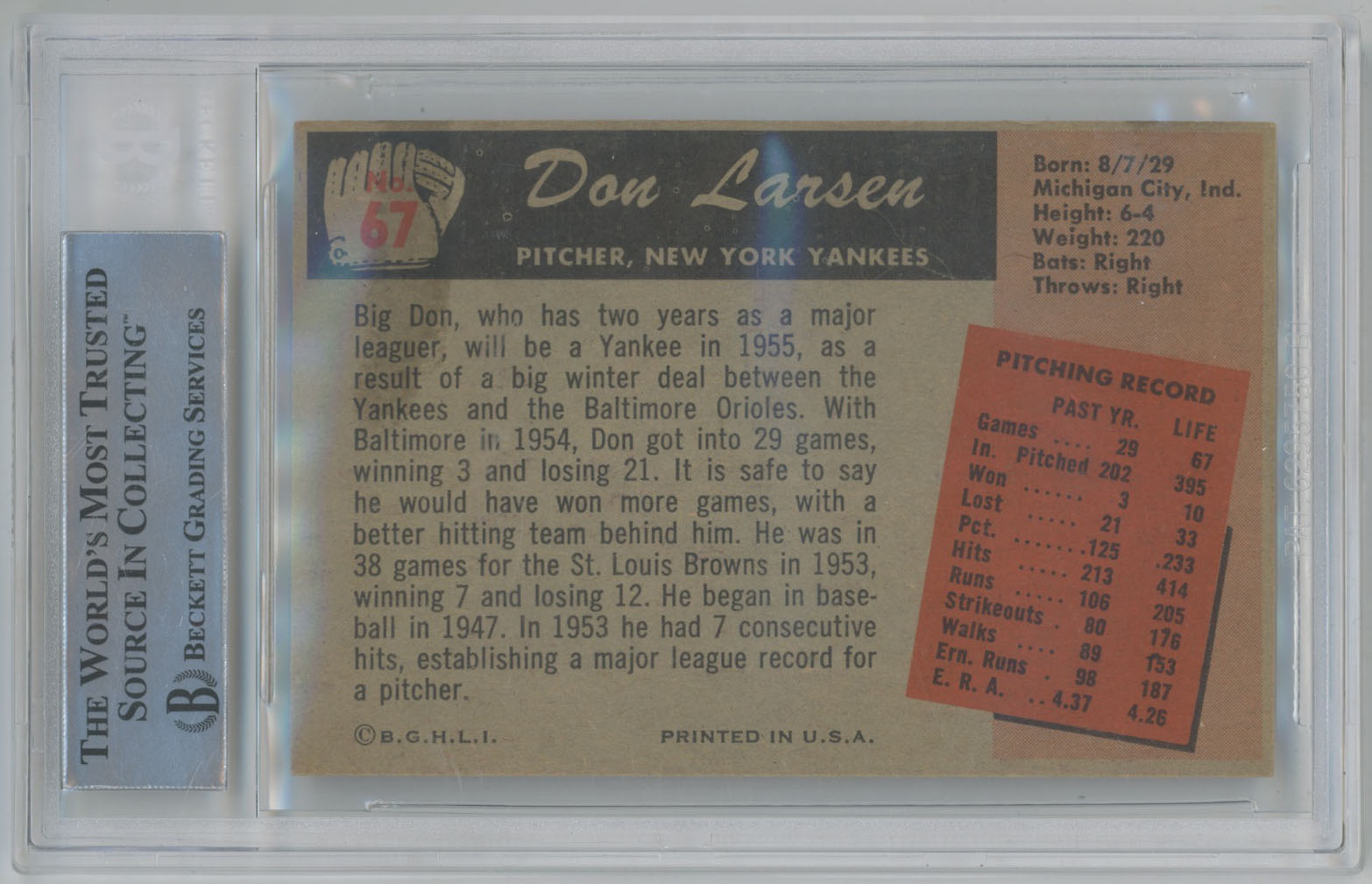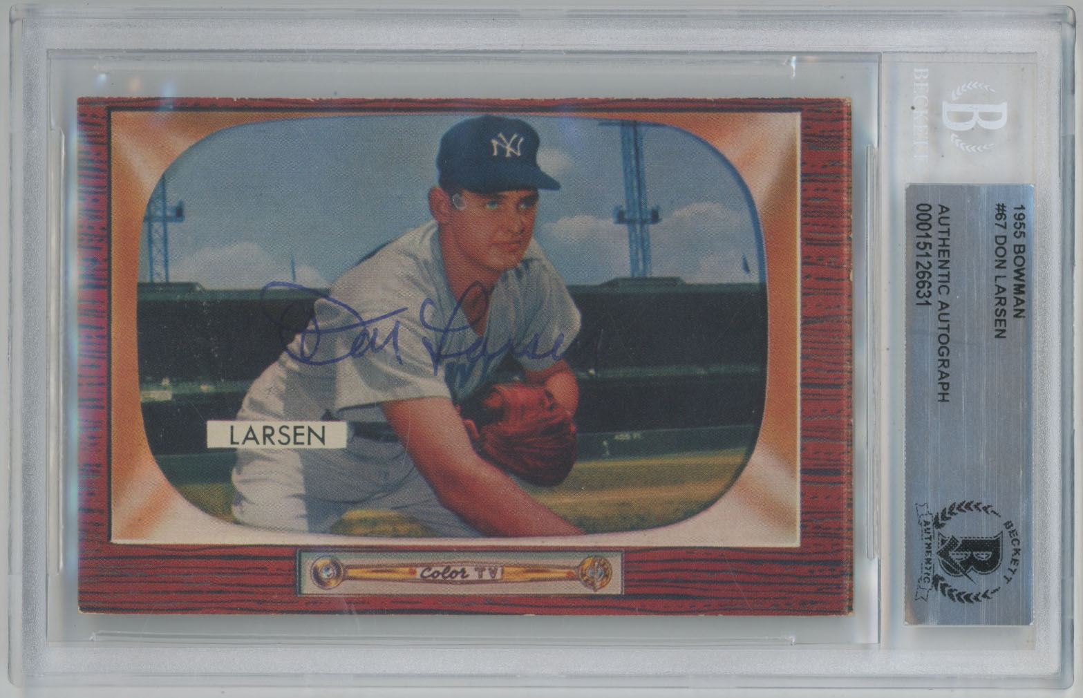 1955 Bowman 67 Don Larsen Signed Card - Beckett Slabbed