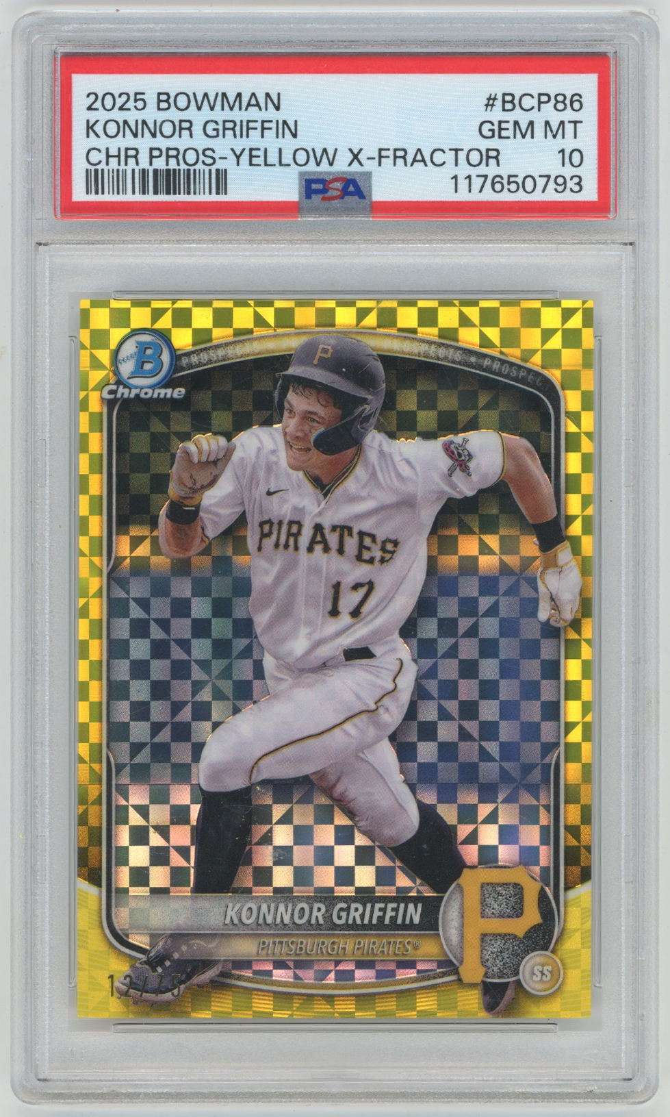 2025 Bowman Chrome Prospects 86 Konnor Griffin Yellow X-Fractor PSA 10