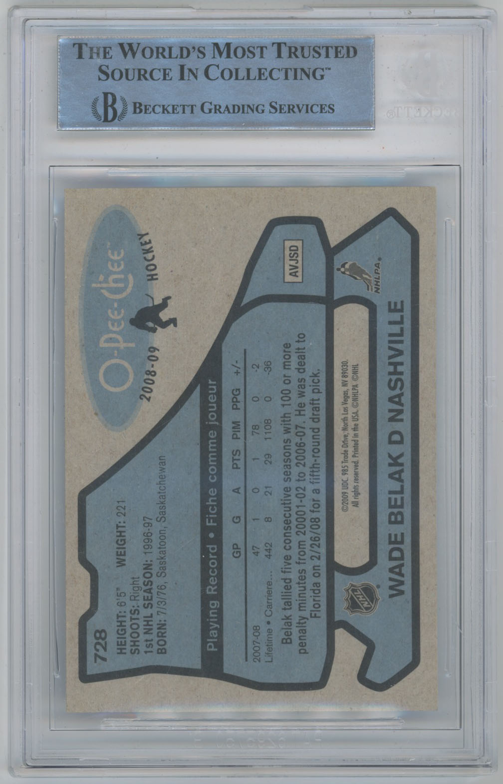 2008 O-Pee-Chee Retro 728 Wade Belak Signed OPC Card Beckett Slabbed