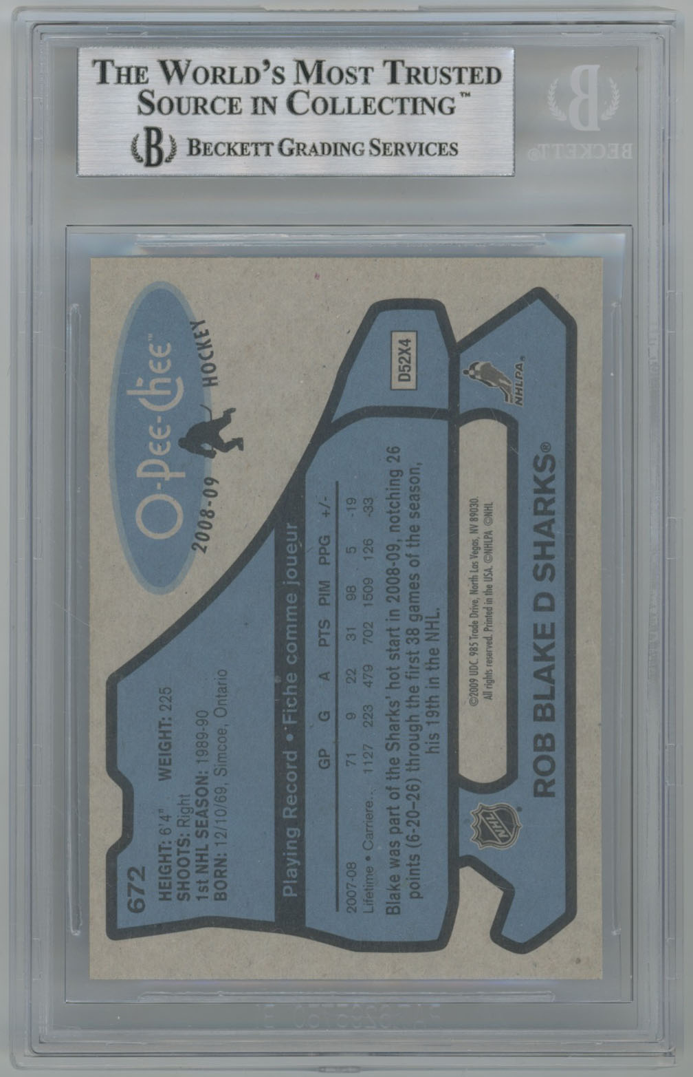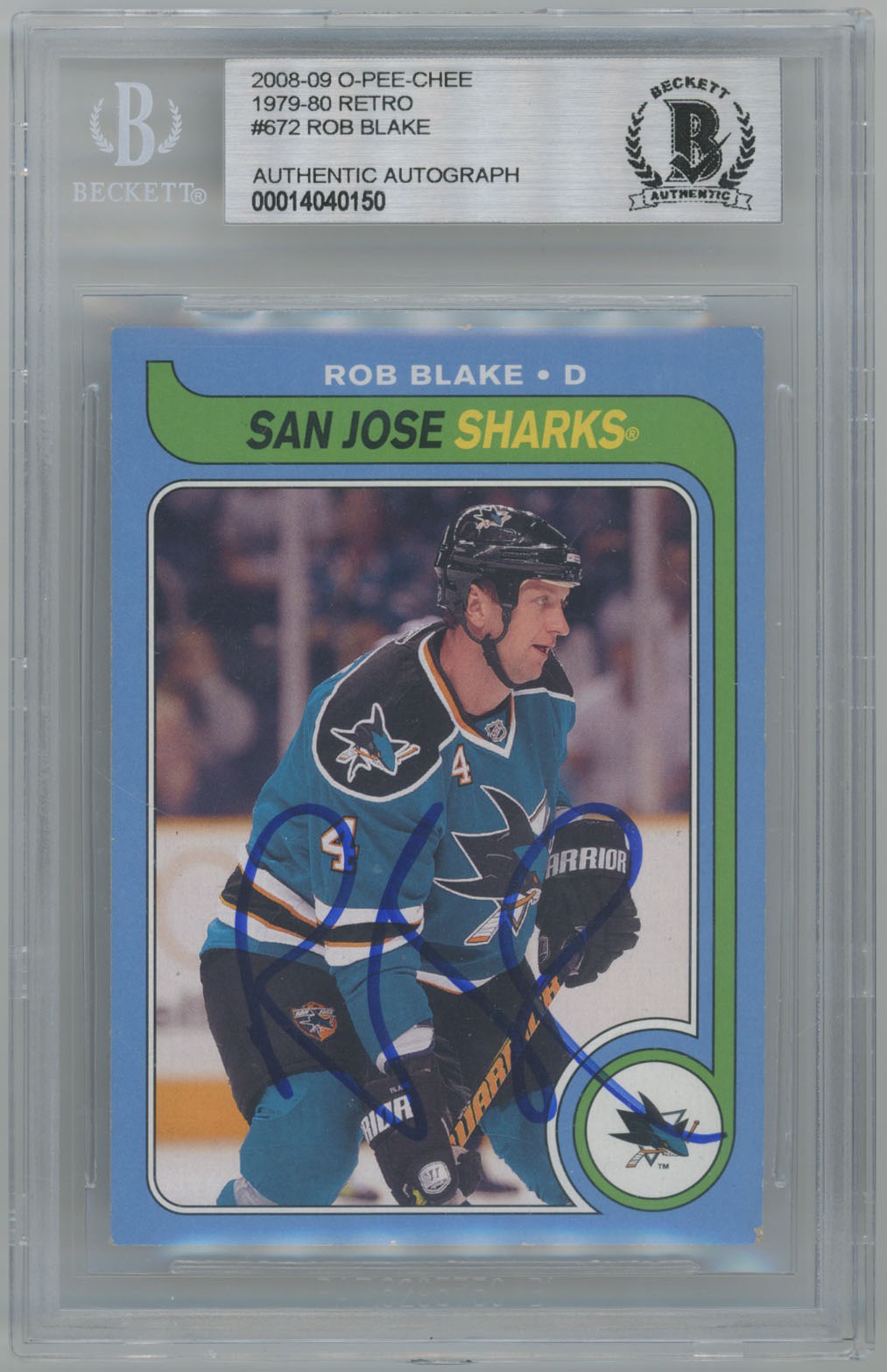 2008 O-Pee-Chee Retro 672 Rob Blake Signed OPC Card Beckett Slabbed