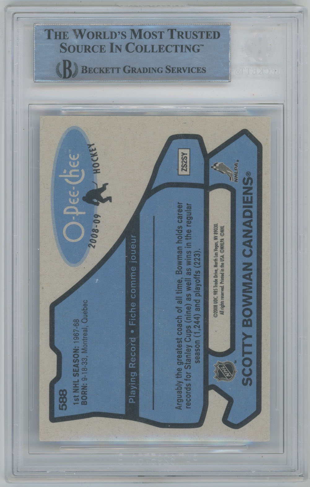 2008 O-Pee-Chee Retro 588 Scotty Bowman Signed Card Beckett Slabbed Canadiens