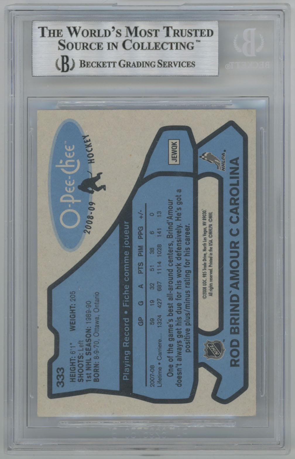 2008 O-Pee-Chee Retro 333 Rod BrindAmour Signed Card Beckett Slabbed Hurricane