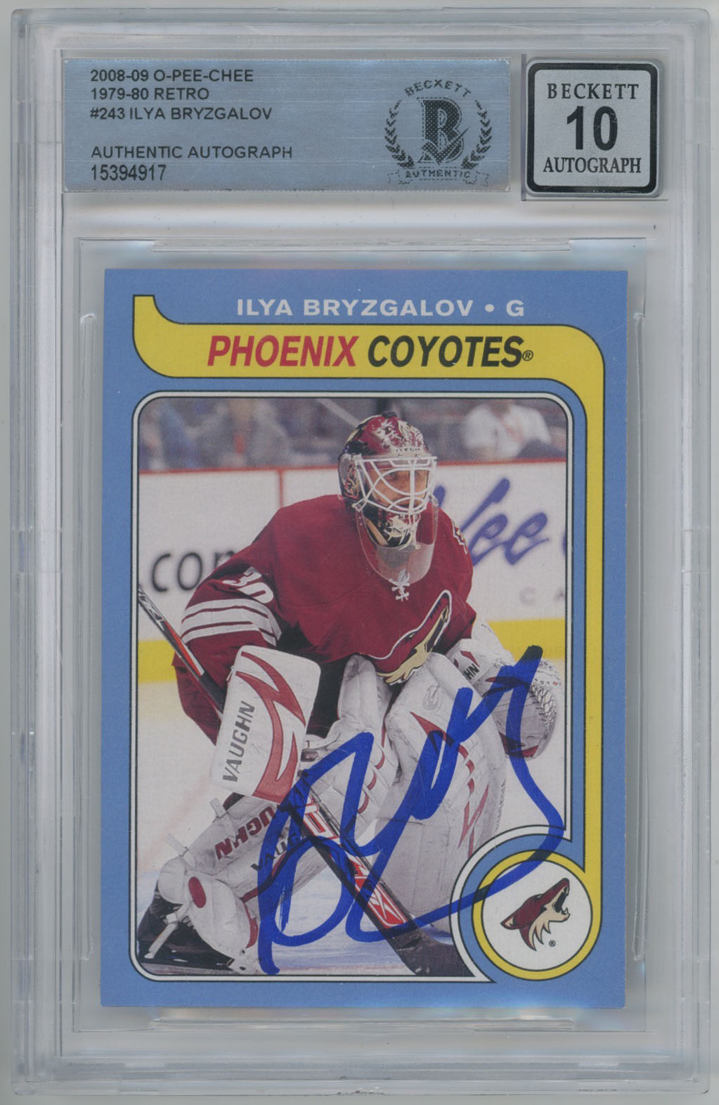 2008 O-Pee-Chee Retro 243 Ilya Bryzgalov Signed OPC Card Beckett Slabbed Beckett 10 (auto)