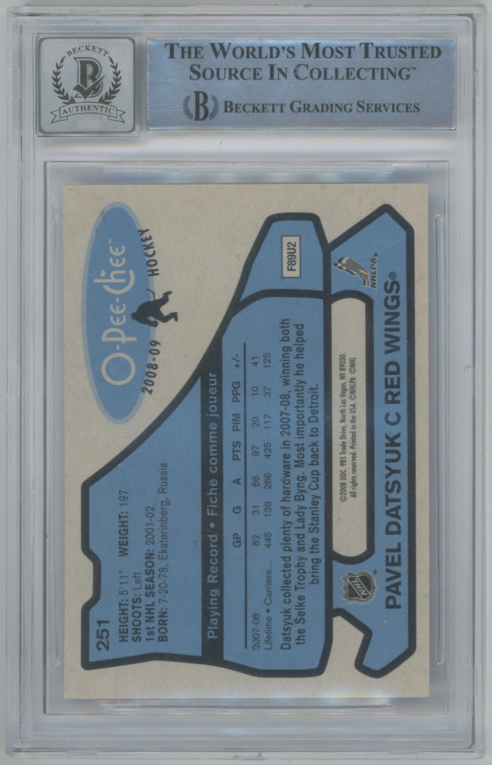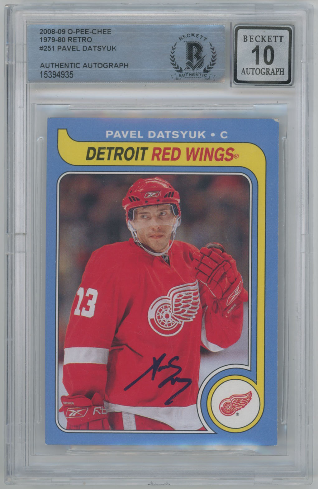 2008 O-Pee-Chee Retro 251 Pavel Datsyuk Signed OPC Card Beckett Slabbed Beckett 10 (auto)