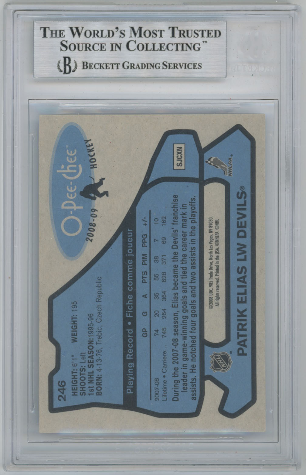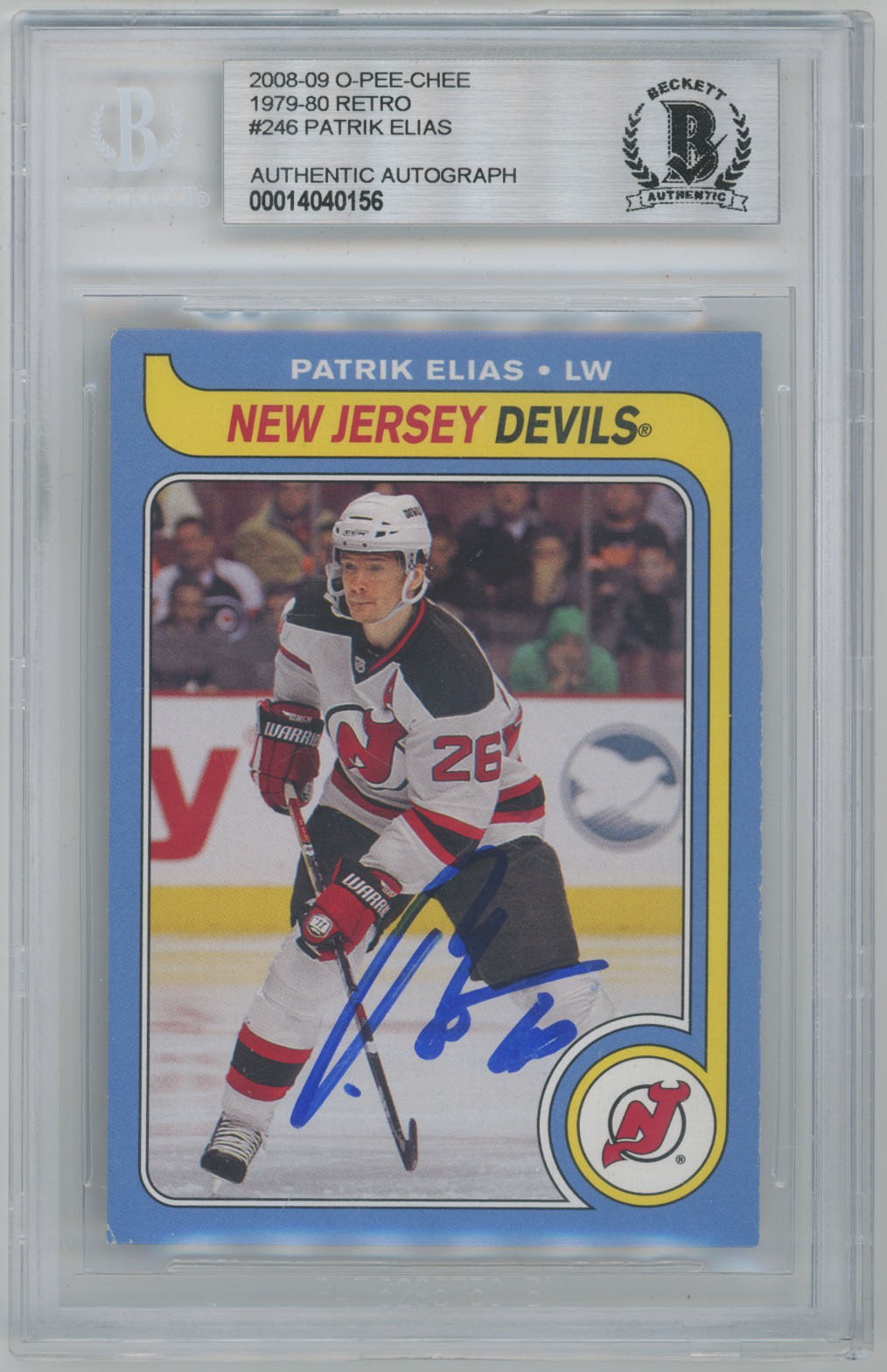 2008 O-Pee-Chee Retro 246 Patrik Elias Signed OPC Card Beckett Slabbed