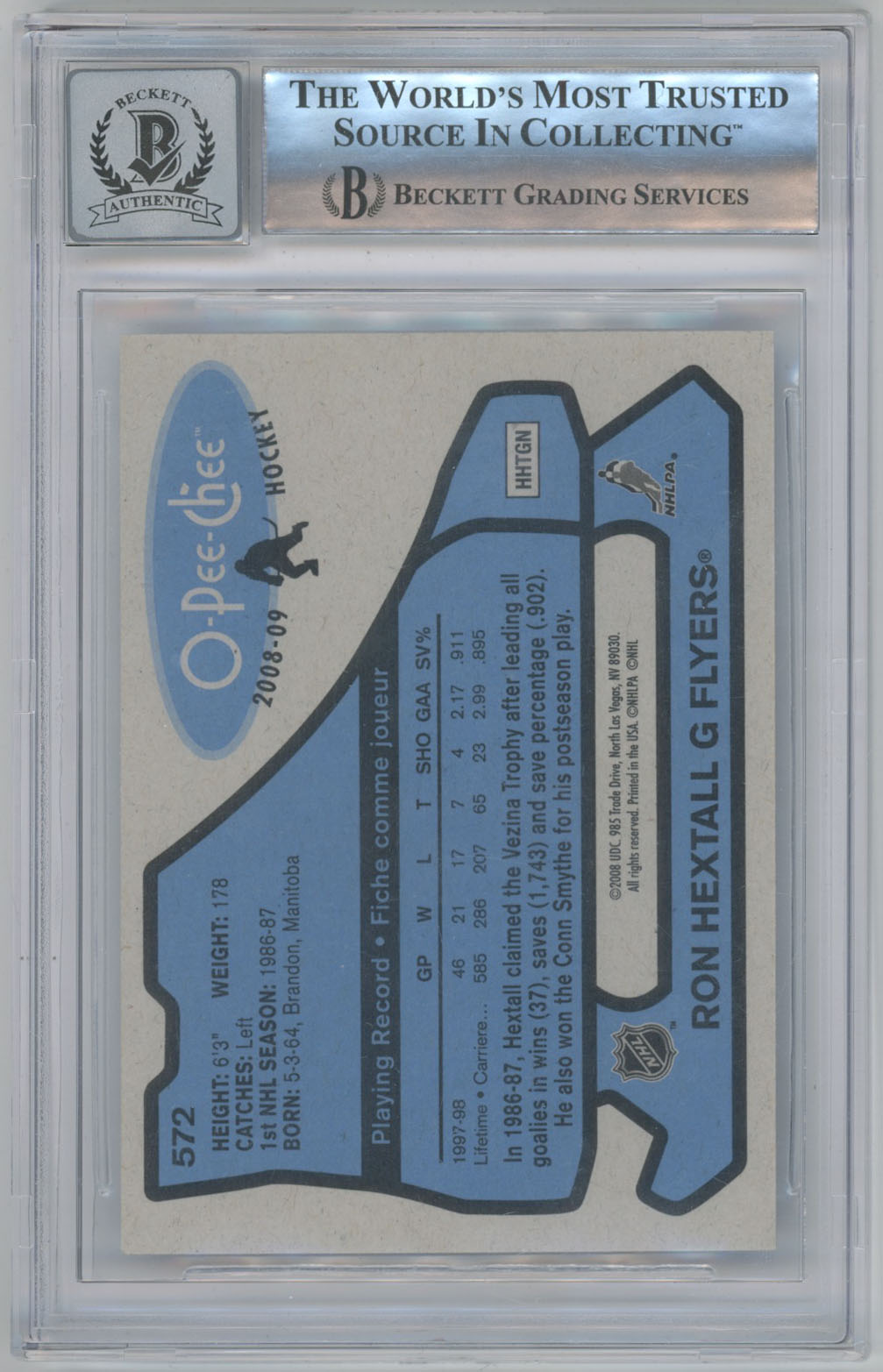 2008 O-Pee-Chee Retro 572 Ron Hextall Signed OPC Card Beckett Flyers Beckett 10 (auto)
