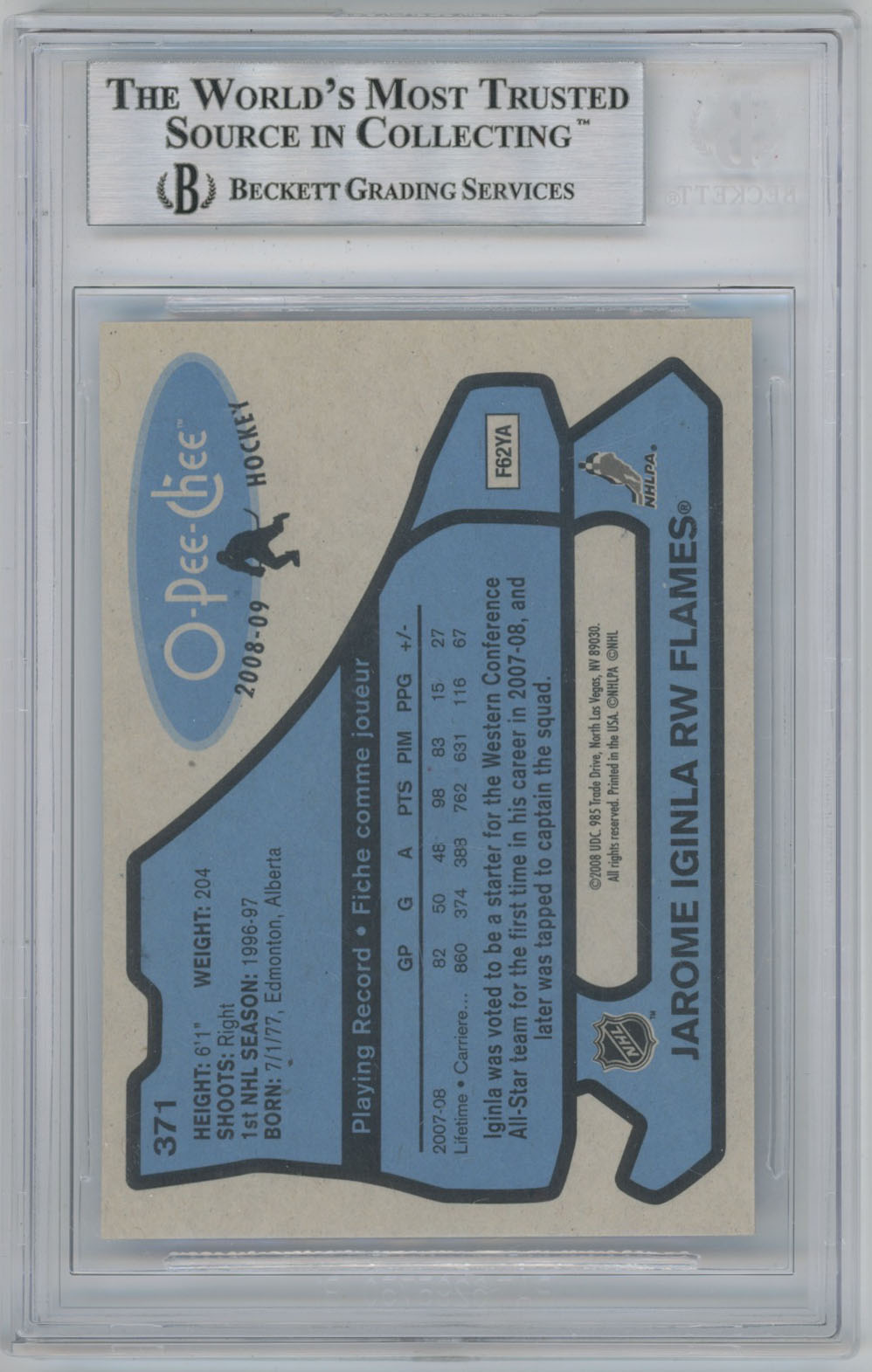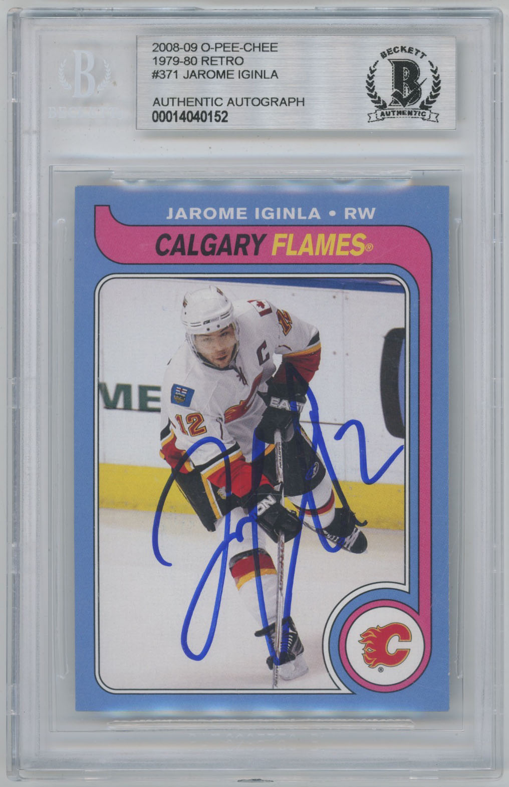 2008 O-Pee-Chee Retro 371 Jarome Iginla Signed Card Beckett Slabbed Flames