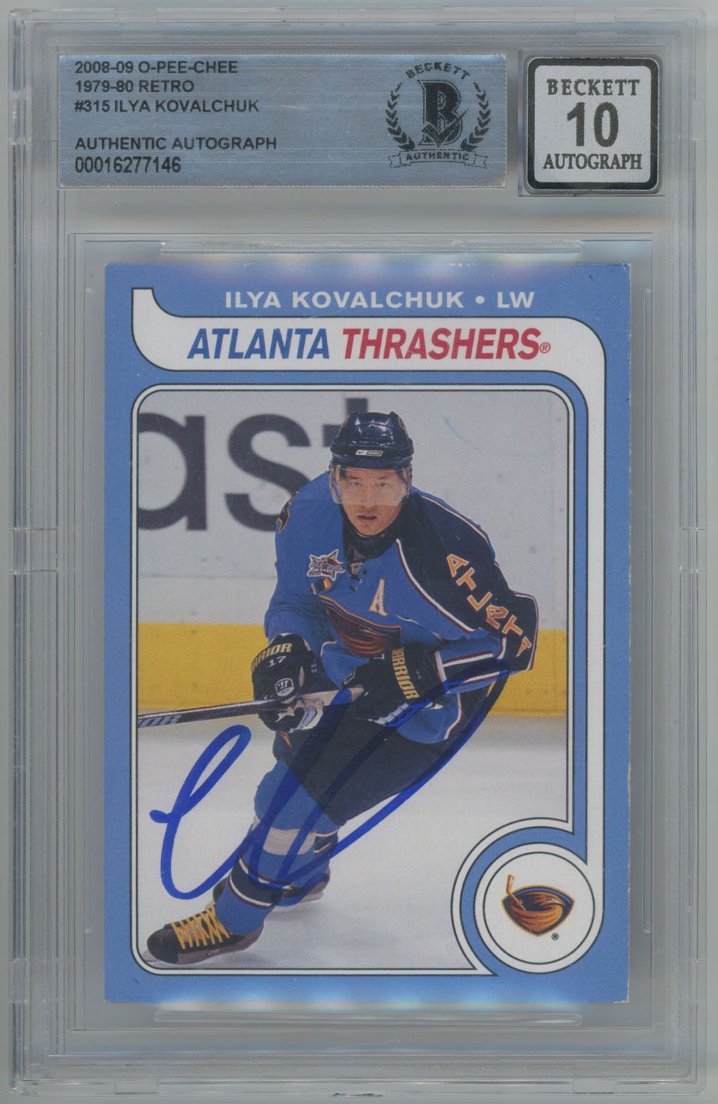 2008 O-Pee-Chee Retro 315 Ilya Kovalchuk Signed OPC Card Beckett Slabbed Beckett 10 (auto)