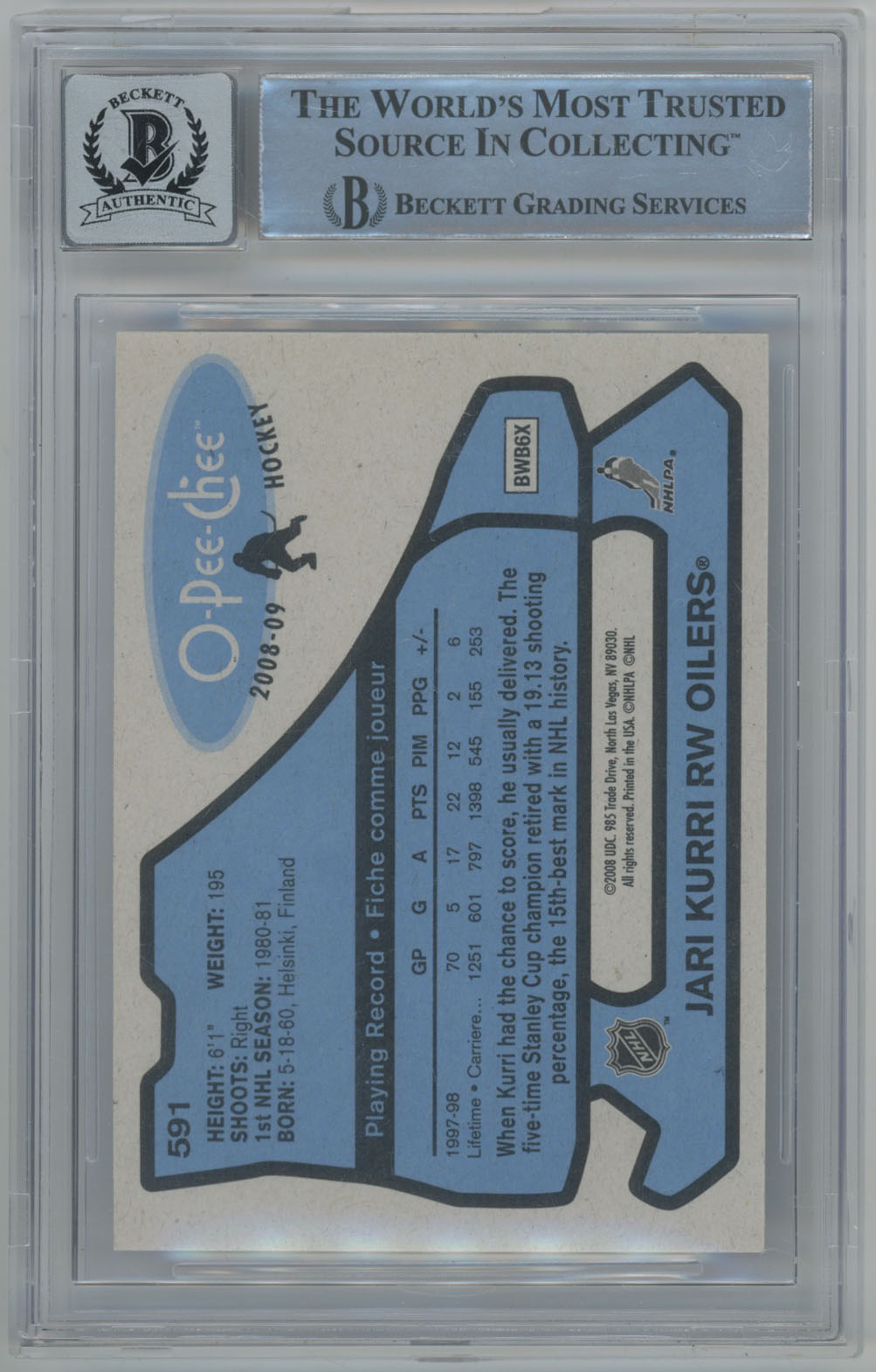 2008 O-Pee-Chee Retro 591 Jari Kurri Signed OPC Card Beckett Slabbed Beckett 10 (auto)