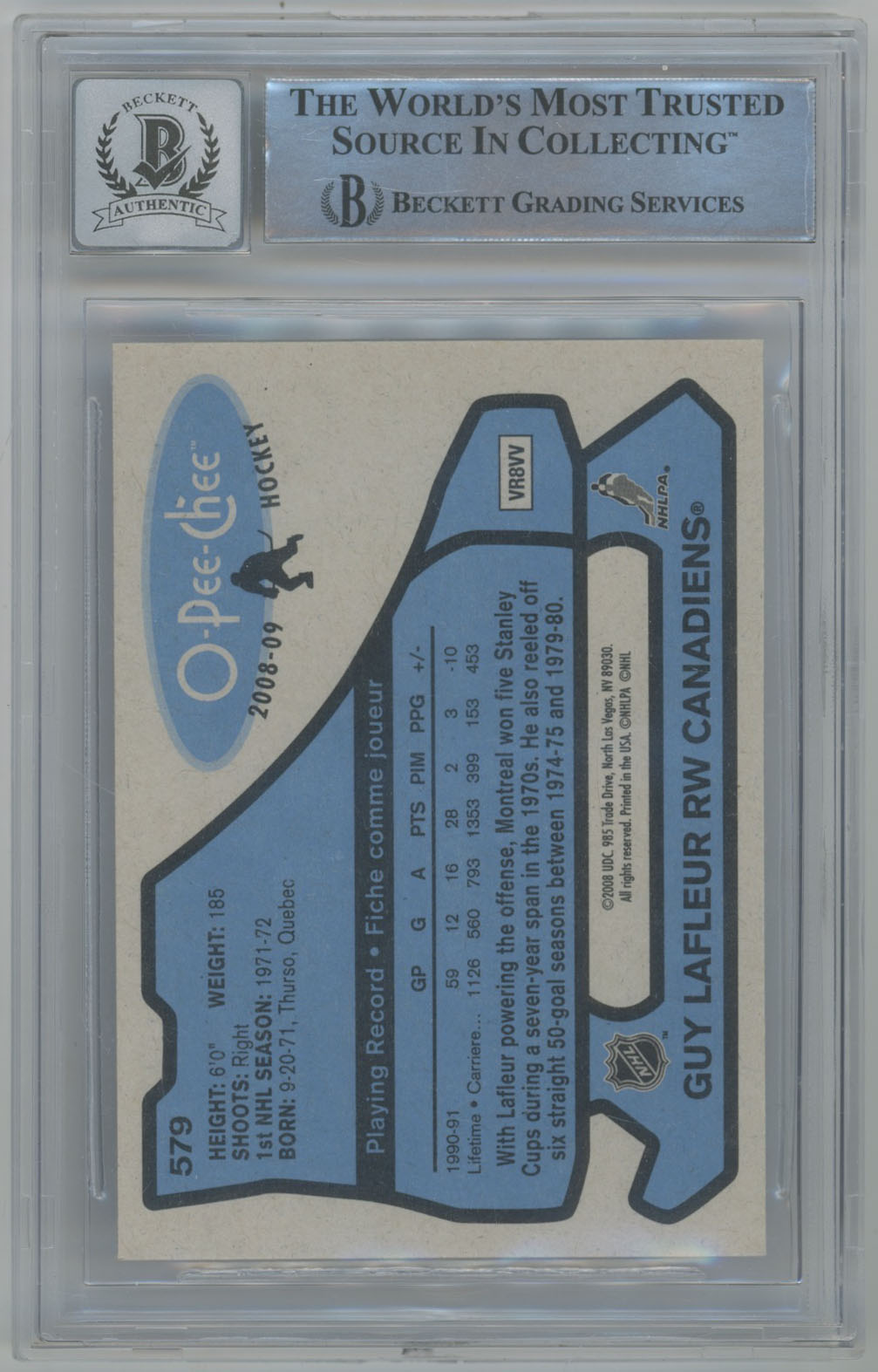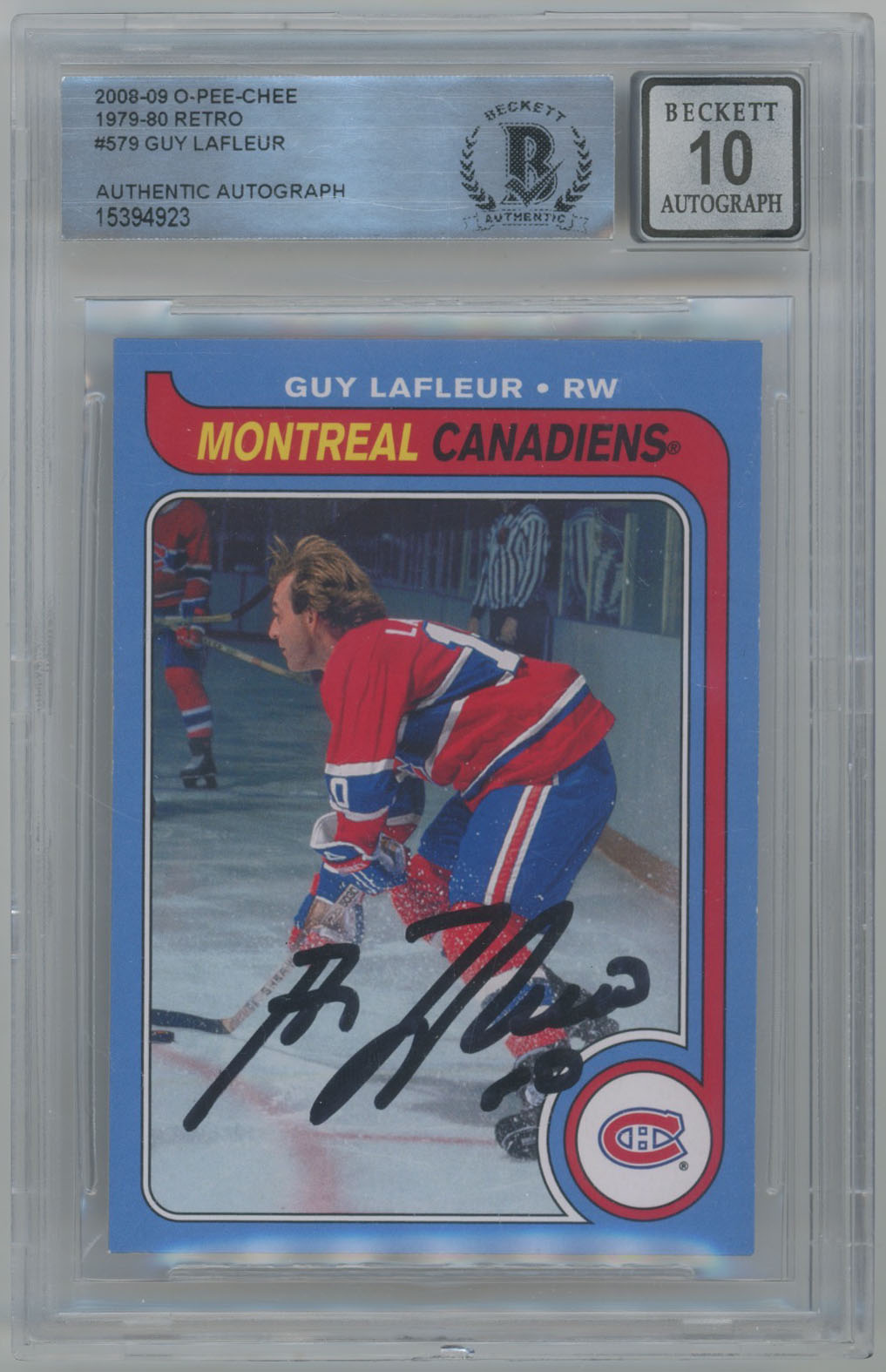 2008 O-Pee-Chee Retro 579 Guy Lafleur Signed OPC Card Beckett Slabbed Beckett 10 (auto)