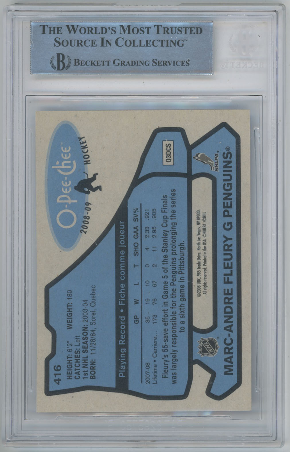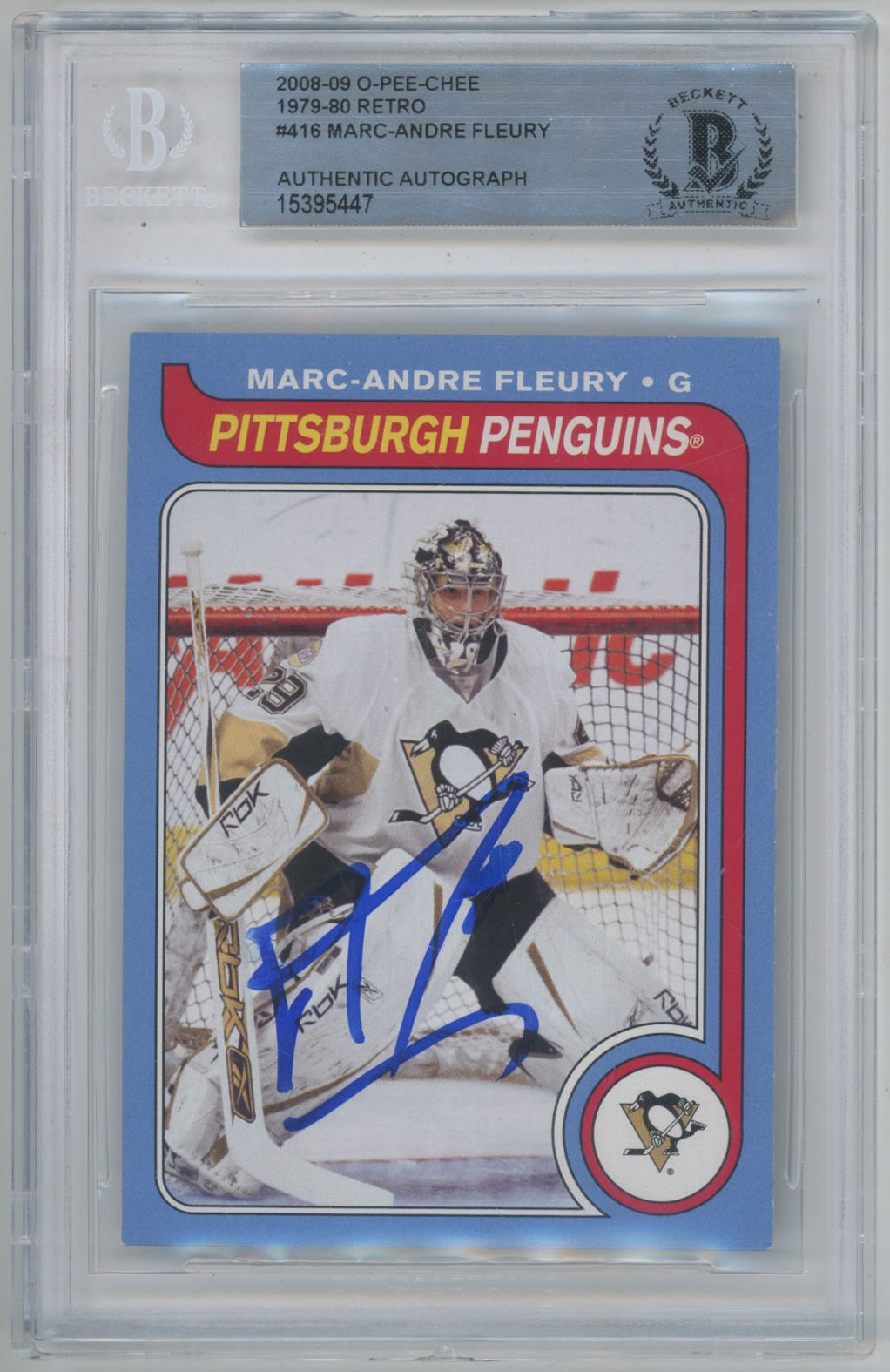 2008 O-Pee-Chee Retro 416 Marc-Andre Fleury Signed OPC Card Beckett Slabbed