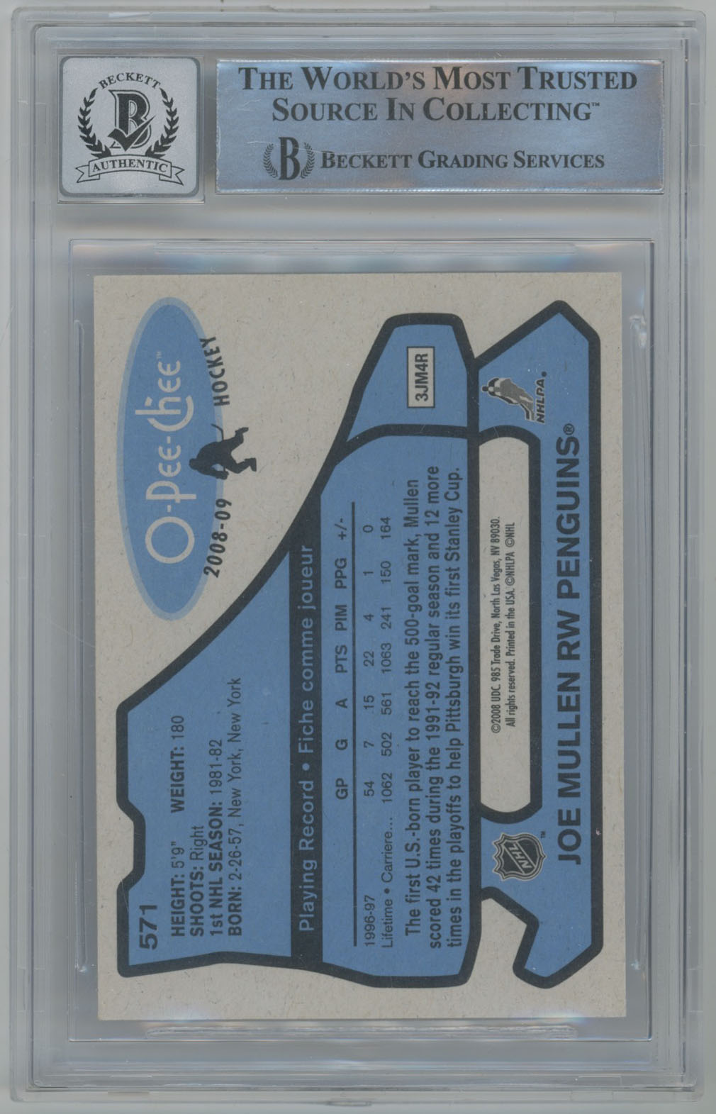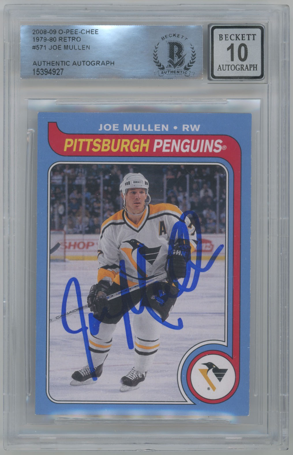 2008 O-Pee-Chee Retro 571 Joe Mullen Signed OPC Card Beckett Slabbed Beckett 10 (auto)