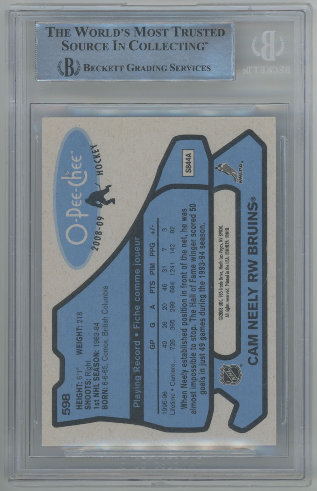 2008 O-Pee-Chee Retro 598 Cam Neely Signed Card Beckett Slabbed Bruins