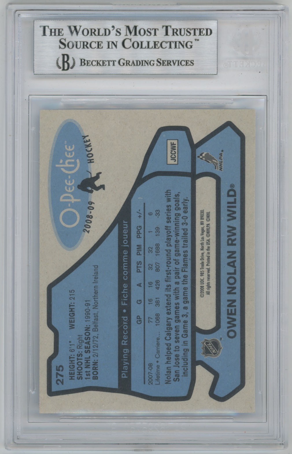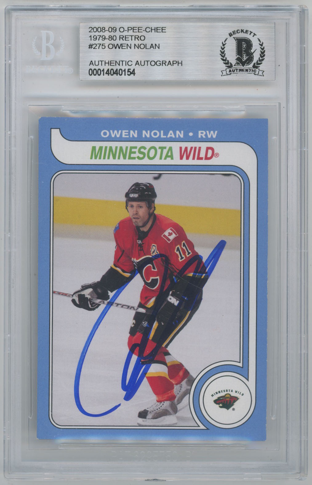 2008 O-Pee-Chee Retro 275 Owen Nolan Signed Card Beckett Slabbed Wild