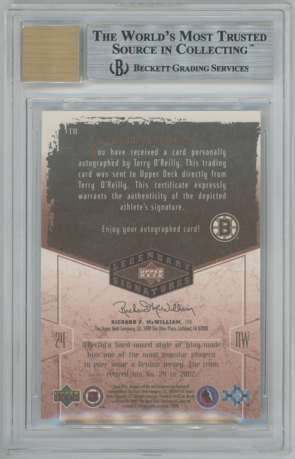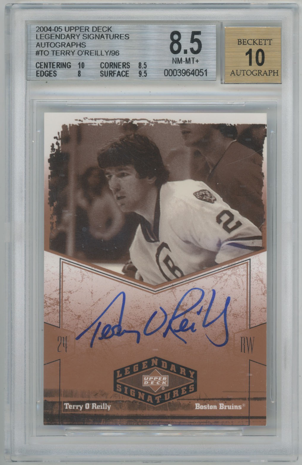 2004 UD Legendary Signatures Auto Terry OReilly Signed Card BGS /93