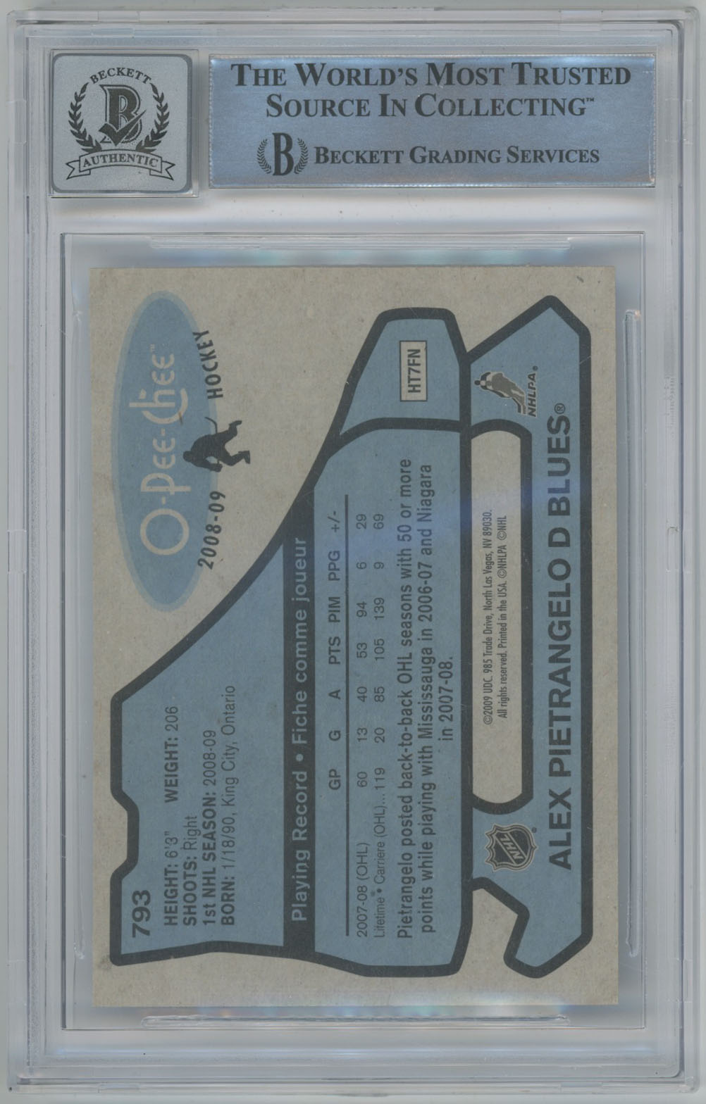 2008 O-Pee-Chee Retro 793 Alex Pietrangelo Signed RC Beckett Slabbed Beckett 10 (auto)