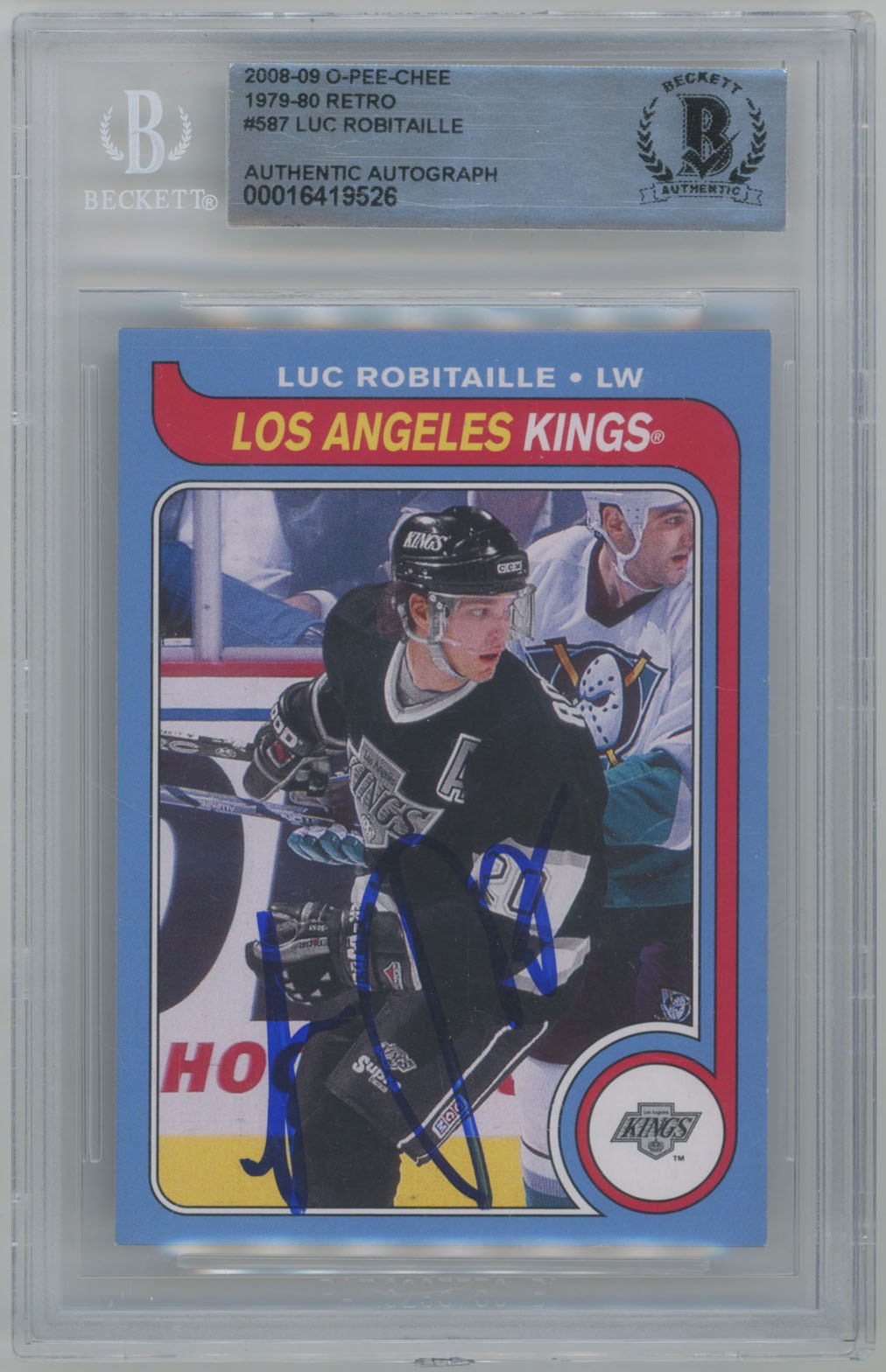 2008 O-Pee-Chee Retro 587 Luc Robitaille Signed Card Beckett Slabbed Kings