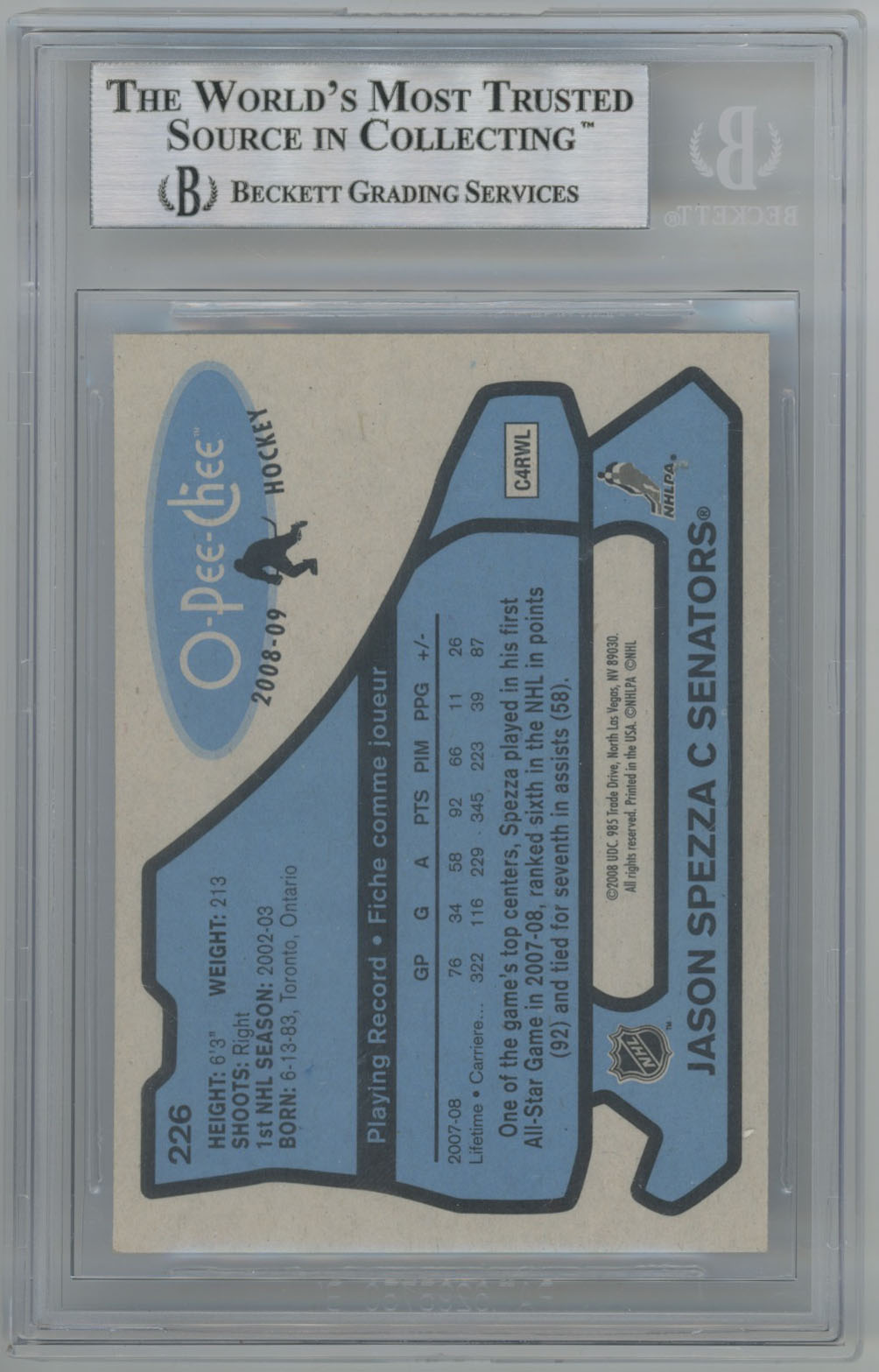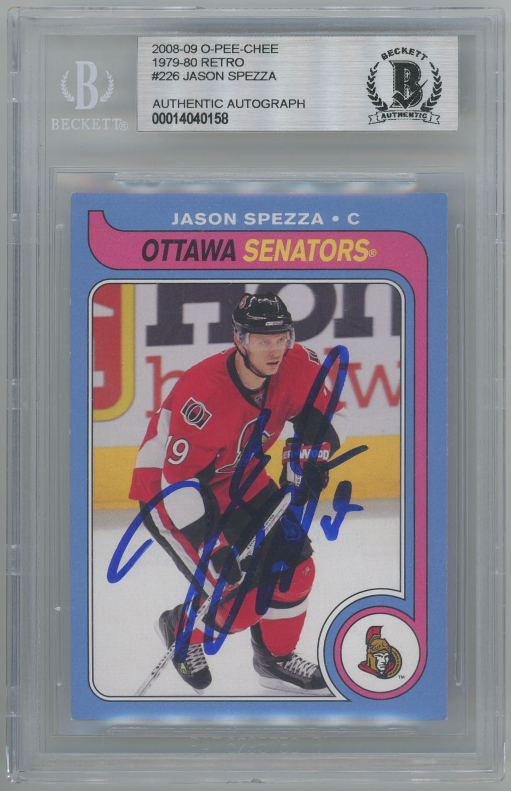 2008 O-Pee-Chee Retro 226 Jason Spezza Signed Card Beckett Slabbed OPC