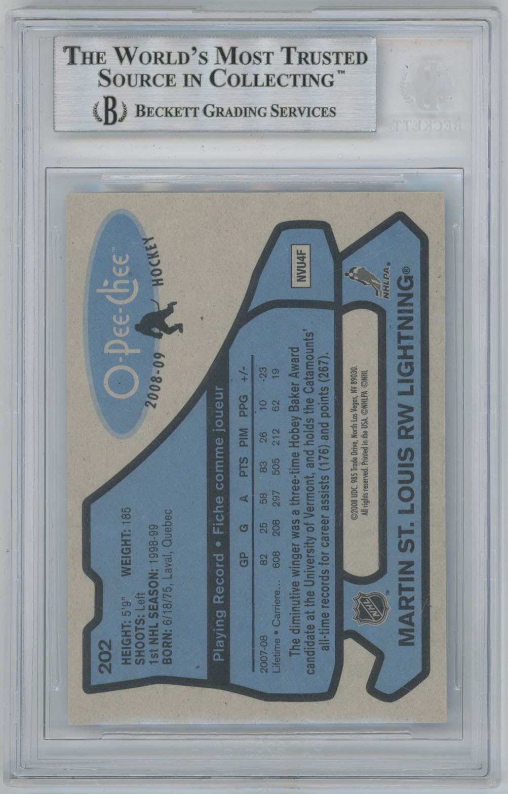 2008 O-Pee-Chee Retro 202 Martin St Louis Signed Card Beckett Slabbed