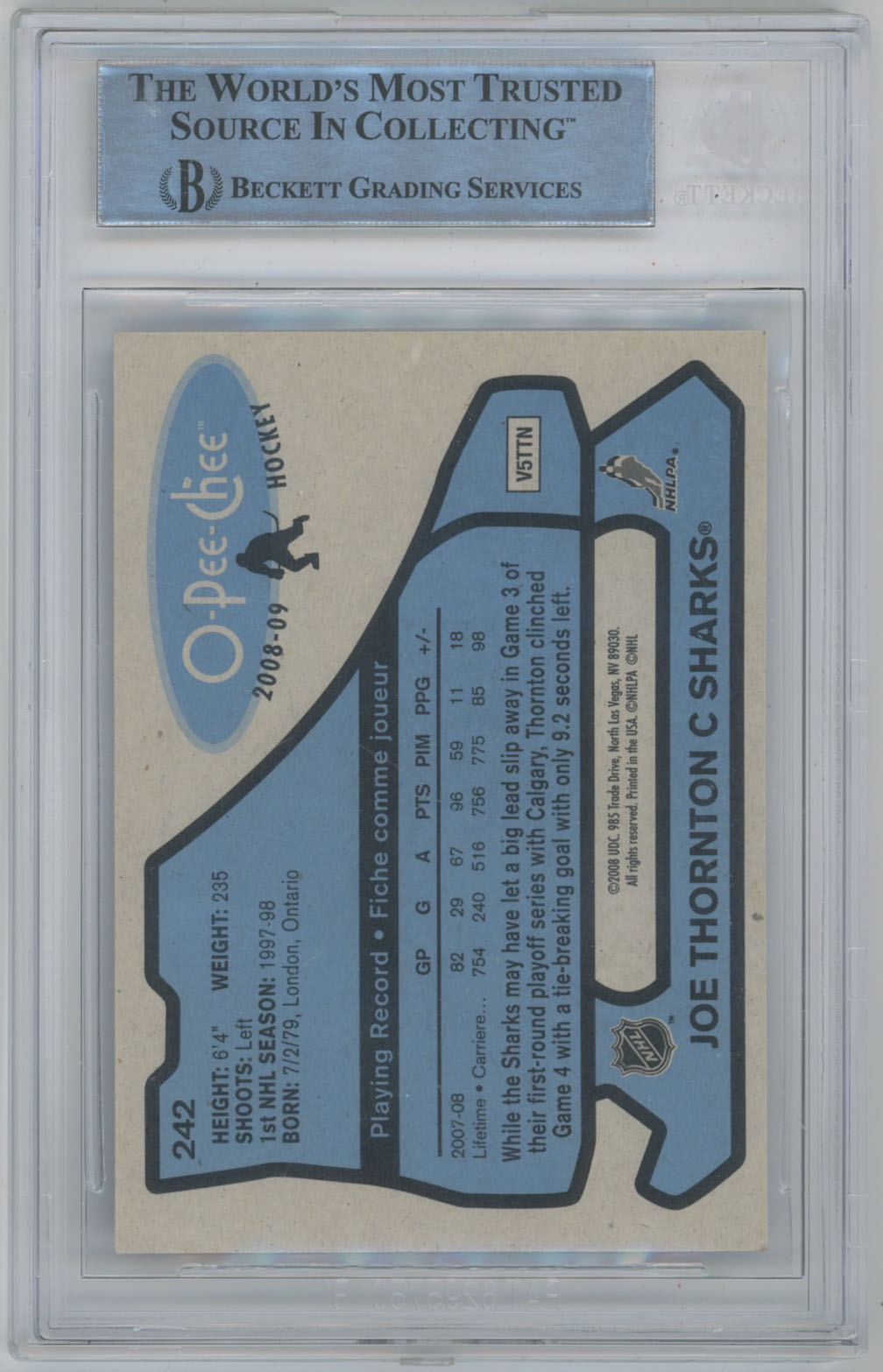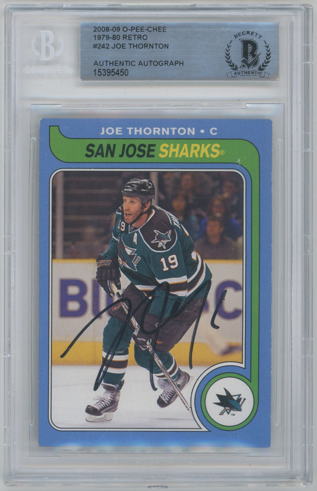 2008 O-Pee-Chee Retro 242 Joe Thornton Signed Card Beckett Slabbed Sharks