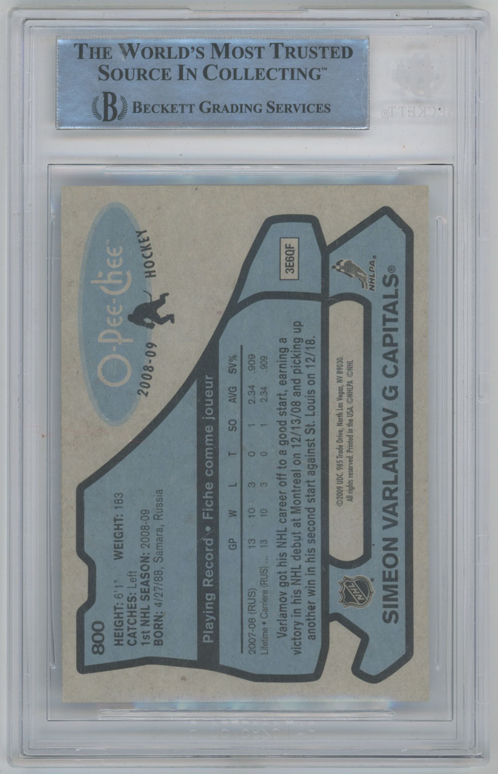2008 O-Pee-Chee Retro Simeon Varlamov Signed RC Parallel Beckett Slabbed