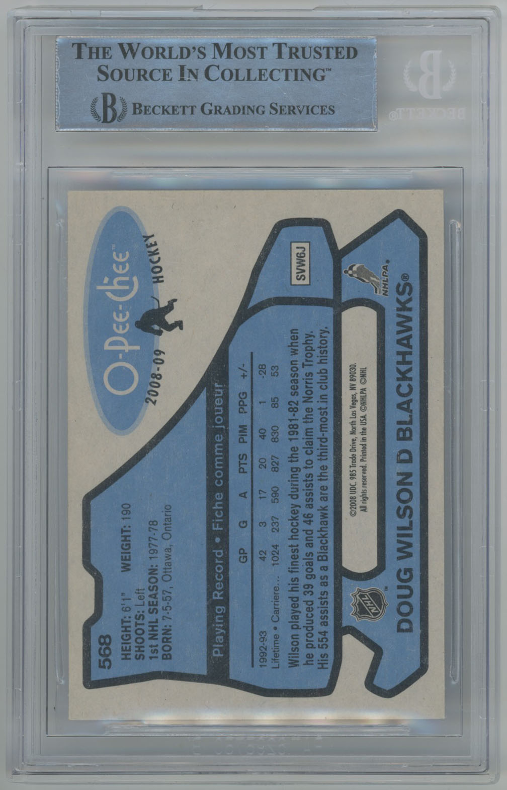 2008 O-Pee-Chee Retro 568 Doug Wilson Signed Card Beckett Slabbed OPC