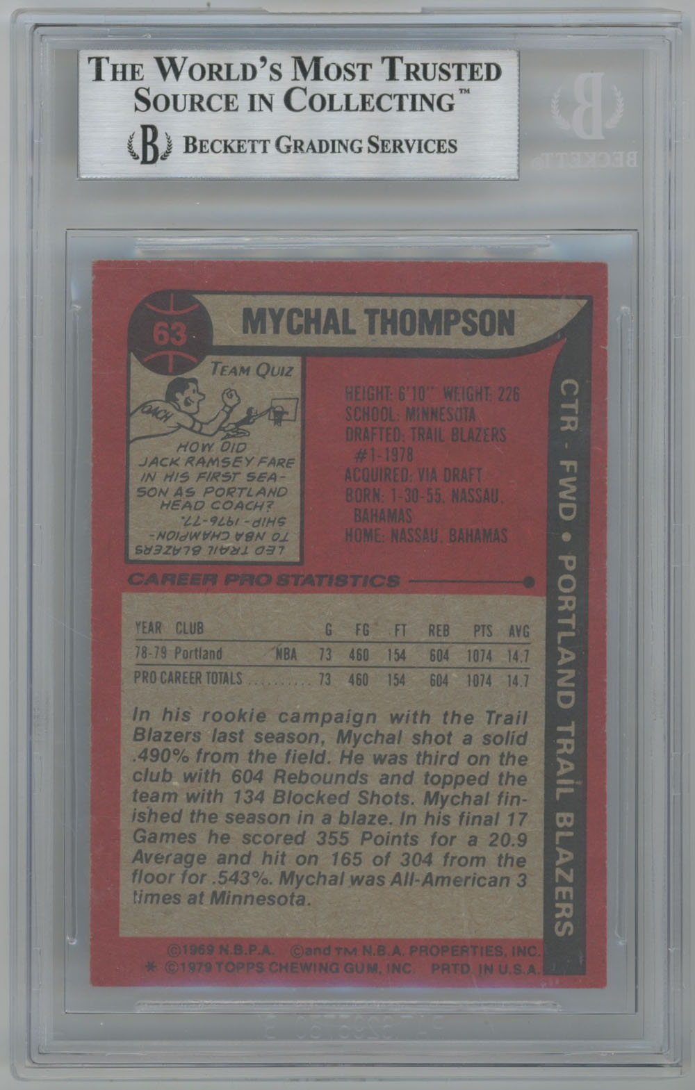1979 Topps 63 Mychal Thompson
