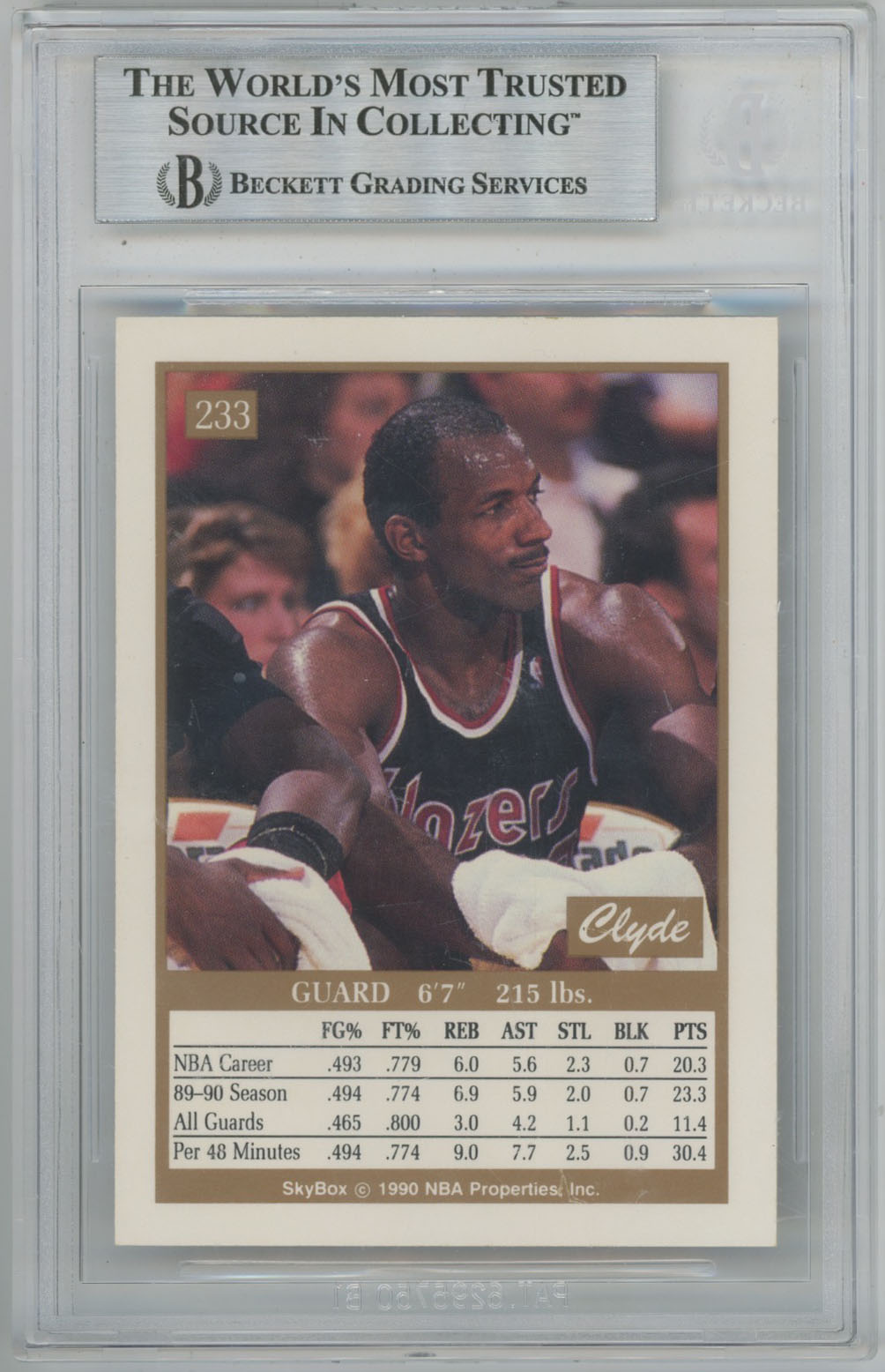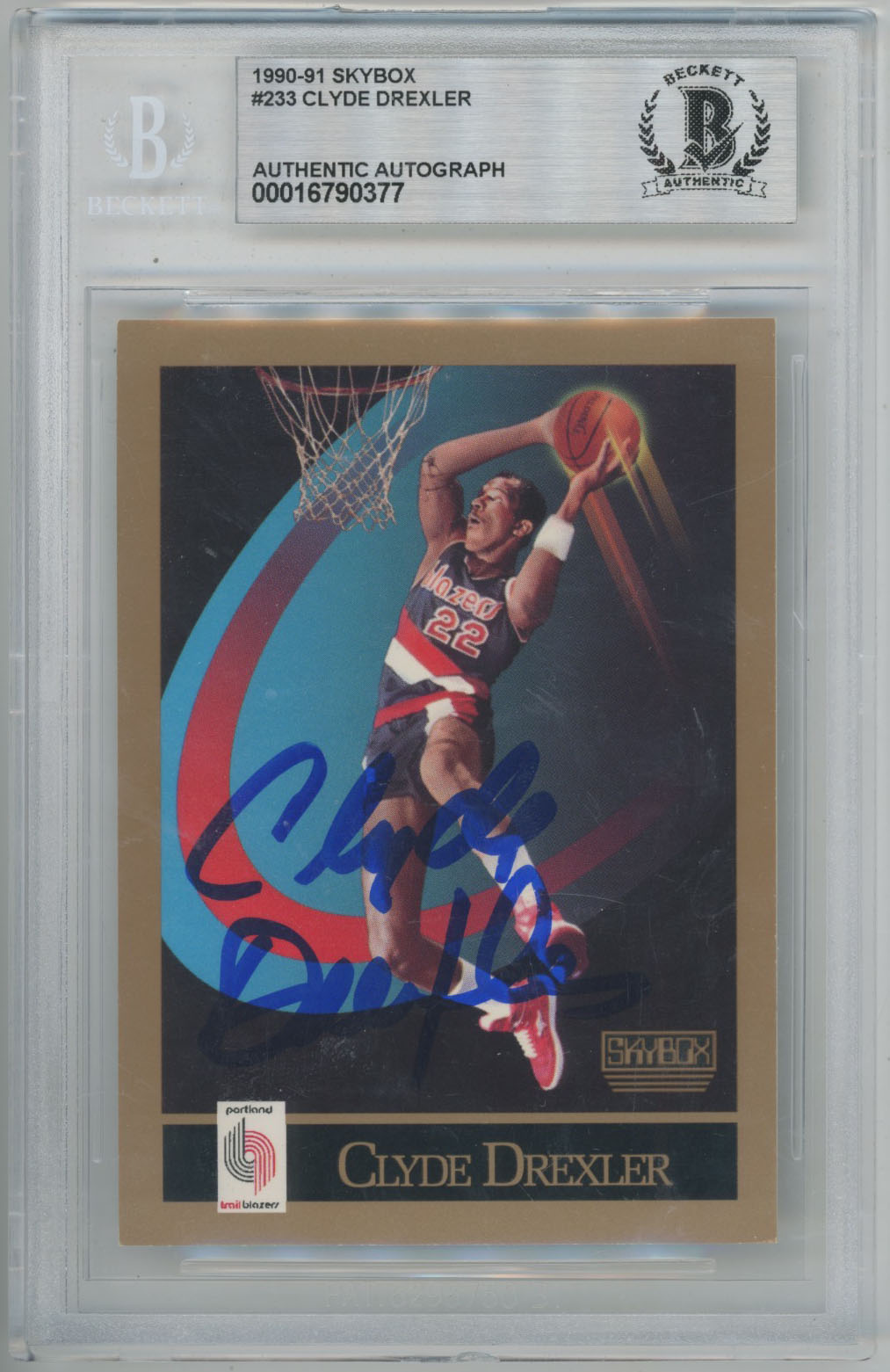 1990 Skybox 233 Clyde Drexler Auto Card - Beckett Slabbed