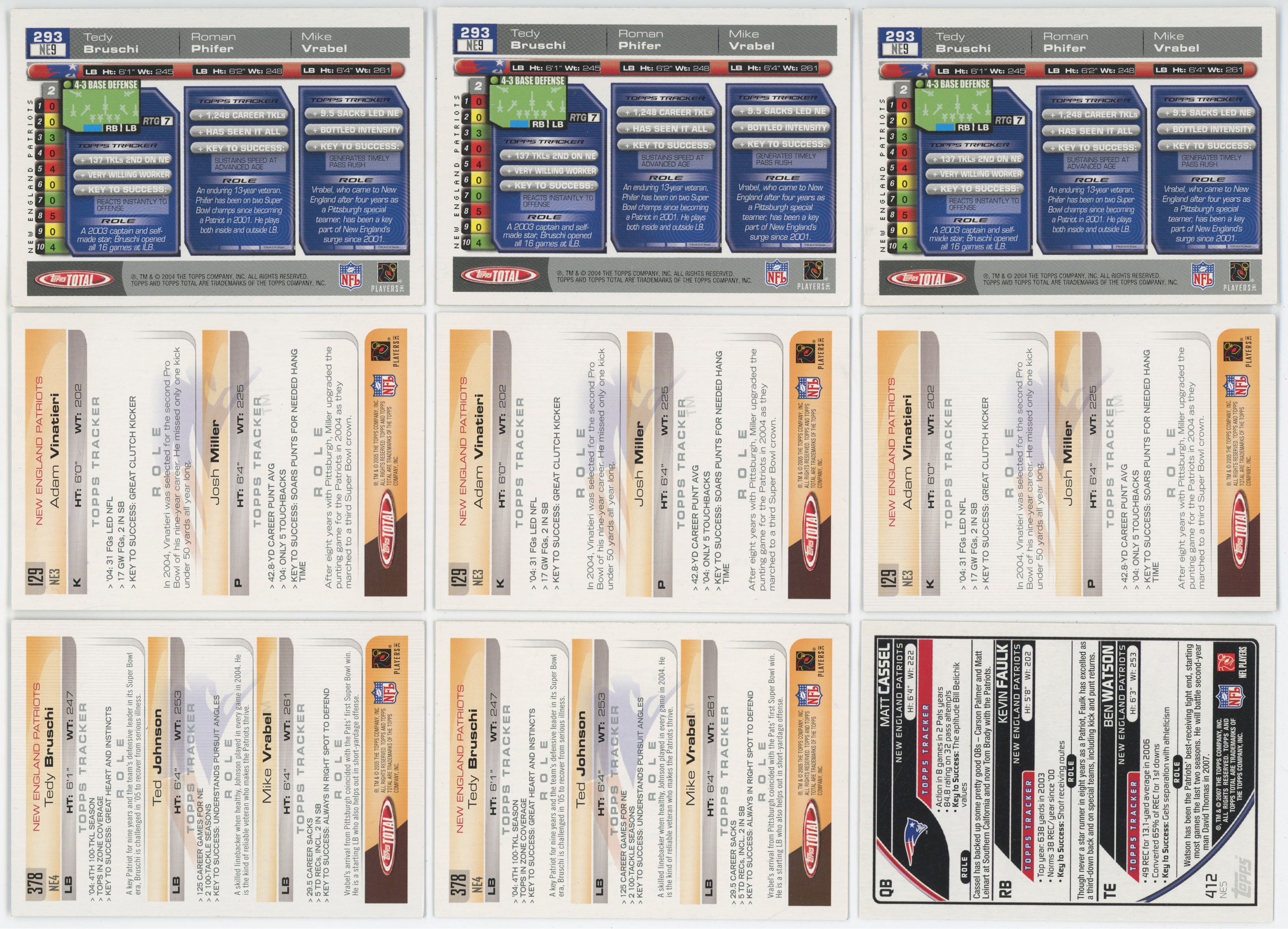 2005 Lot of 9 Patriots Stars Signed Cards (Bruschi, Faulk, Vinatieri 9