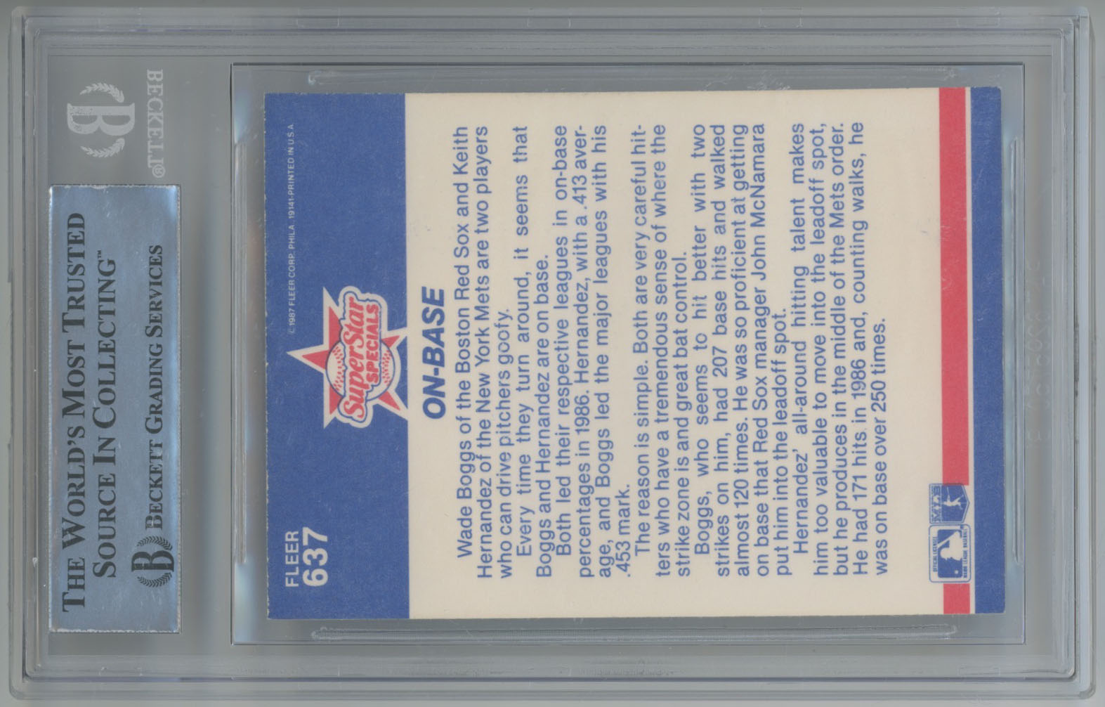 1987 Fleer 637 Wade Boggs/Keith Hernandez Dual-Signed Card - Beckett Slabbed