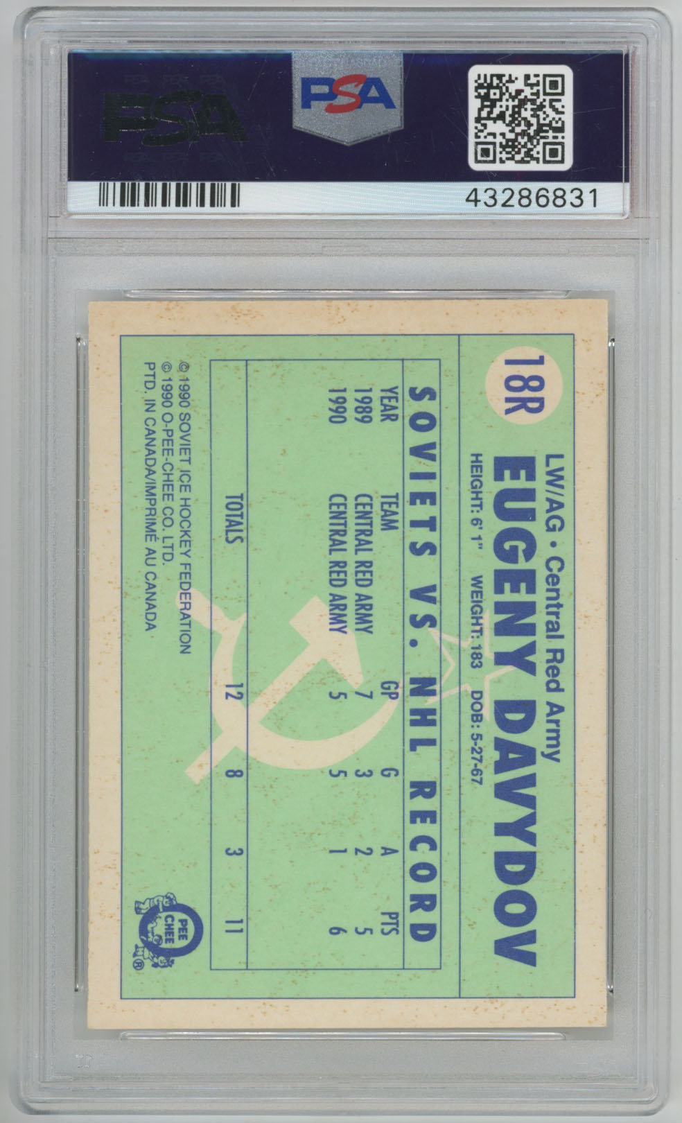 1990 O-Pee-Chee Red Army Evgeny Davydov Signed Rookie OPC PSA 10 (auto)