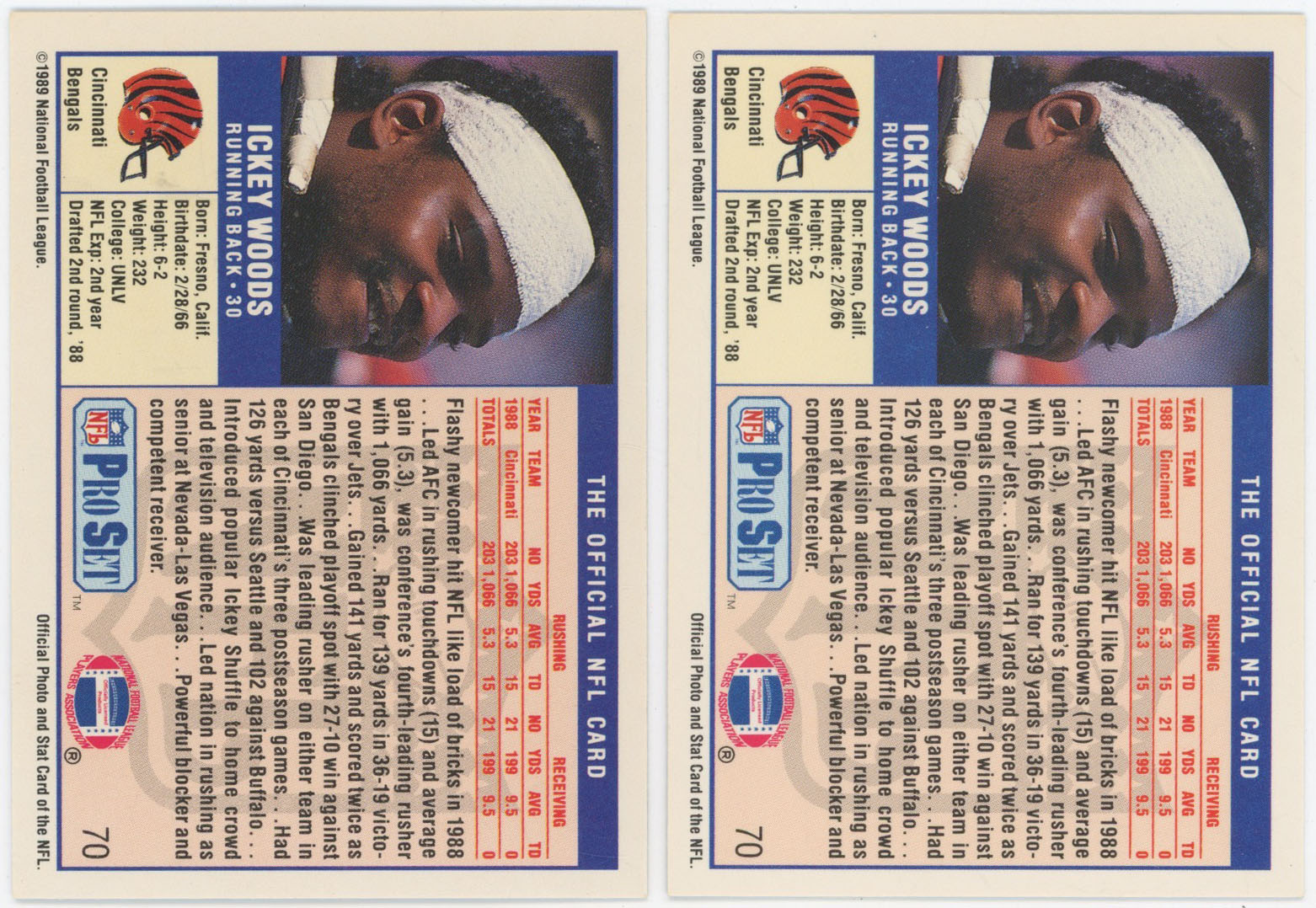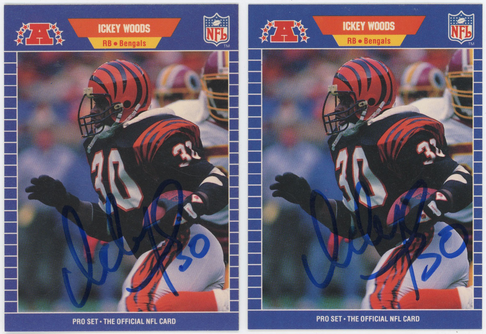 1989 Pro Set 70 Ickey Woods Signed Card Pair 9.5