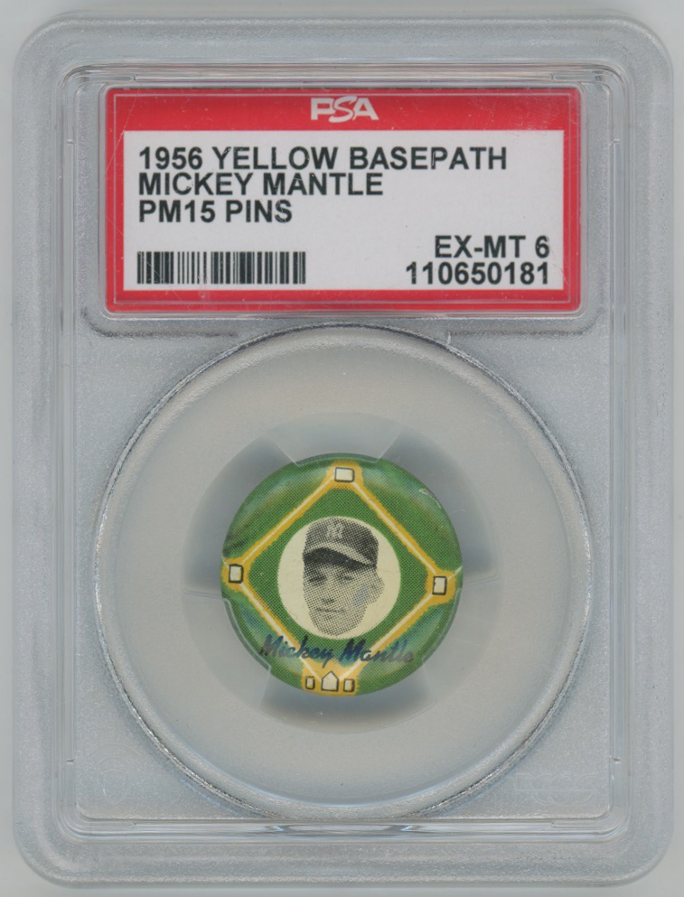 1956 Yellow Basepath Pins 20 Mickey Mantle PSA 6