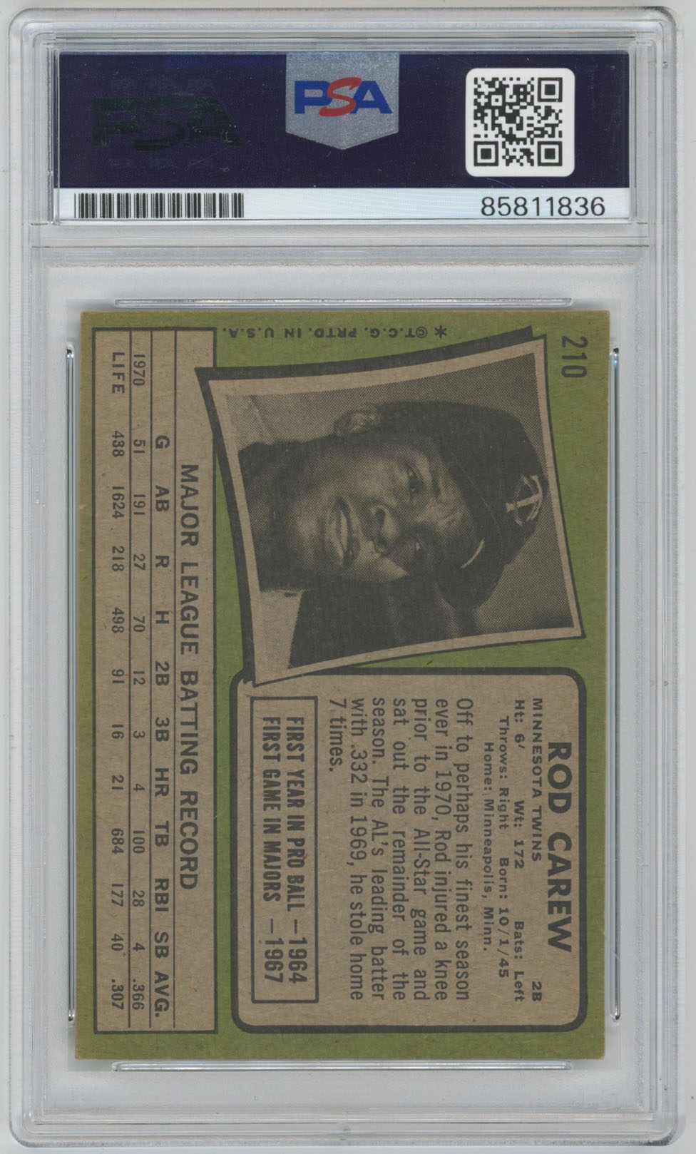 1970 Topps 290 Carew Ex-Mt