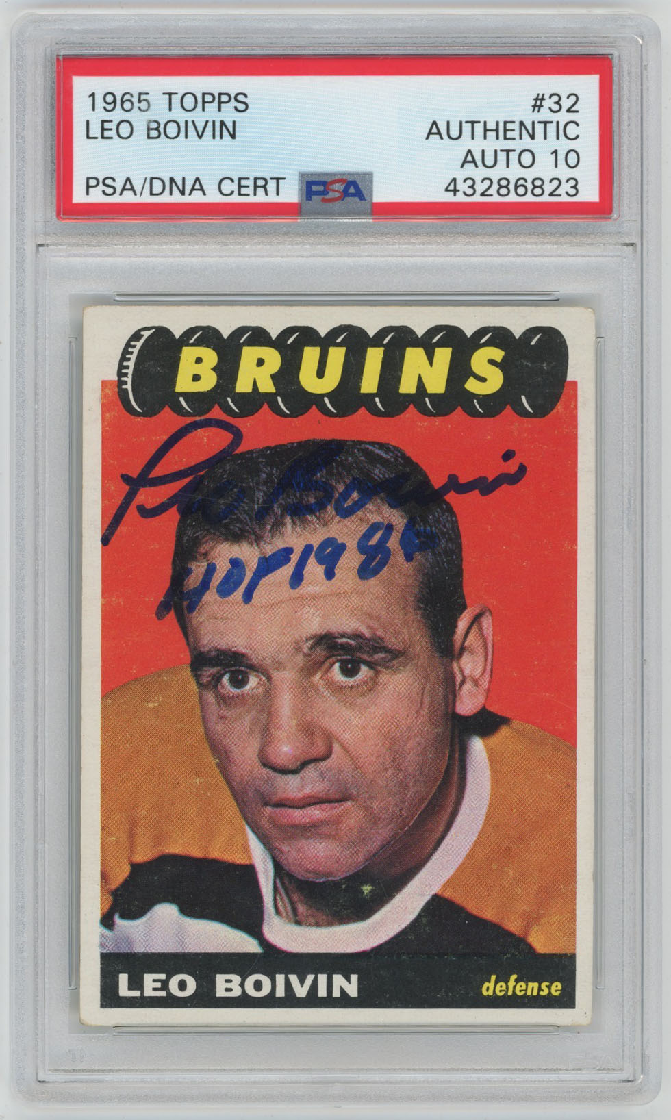 1965 Topps 32 Leo Boivin Signed Card PSA 10 (auto)