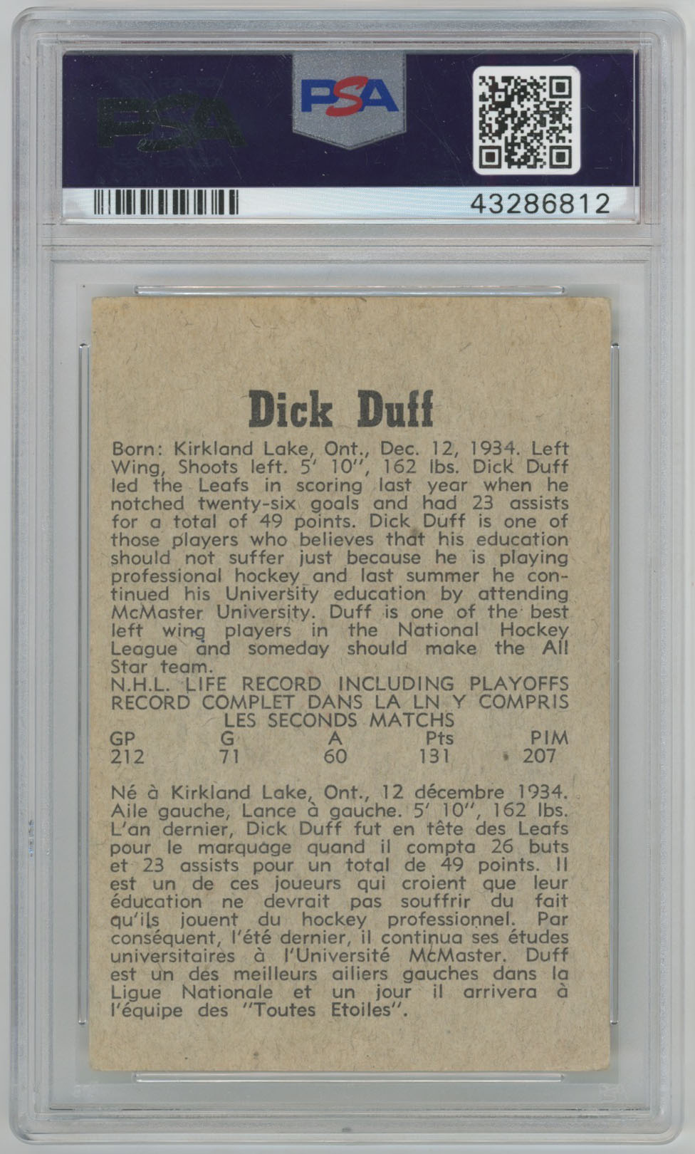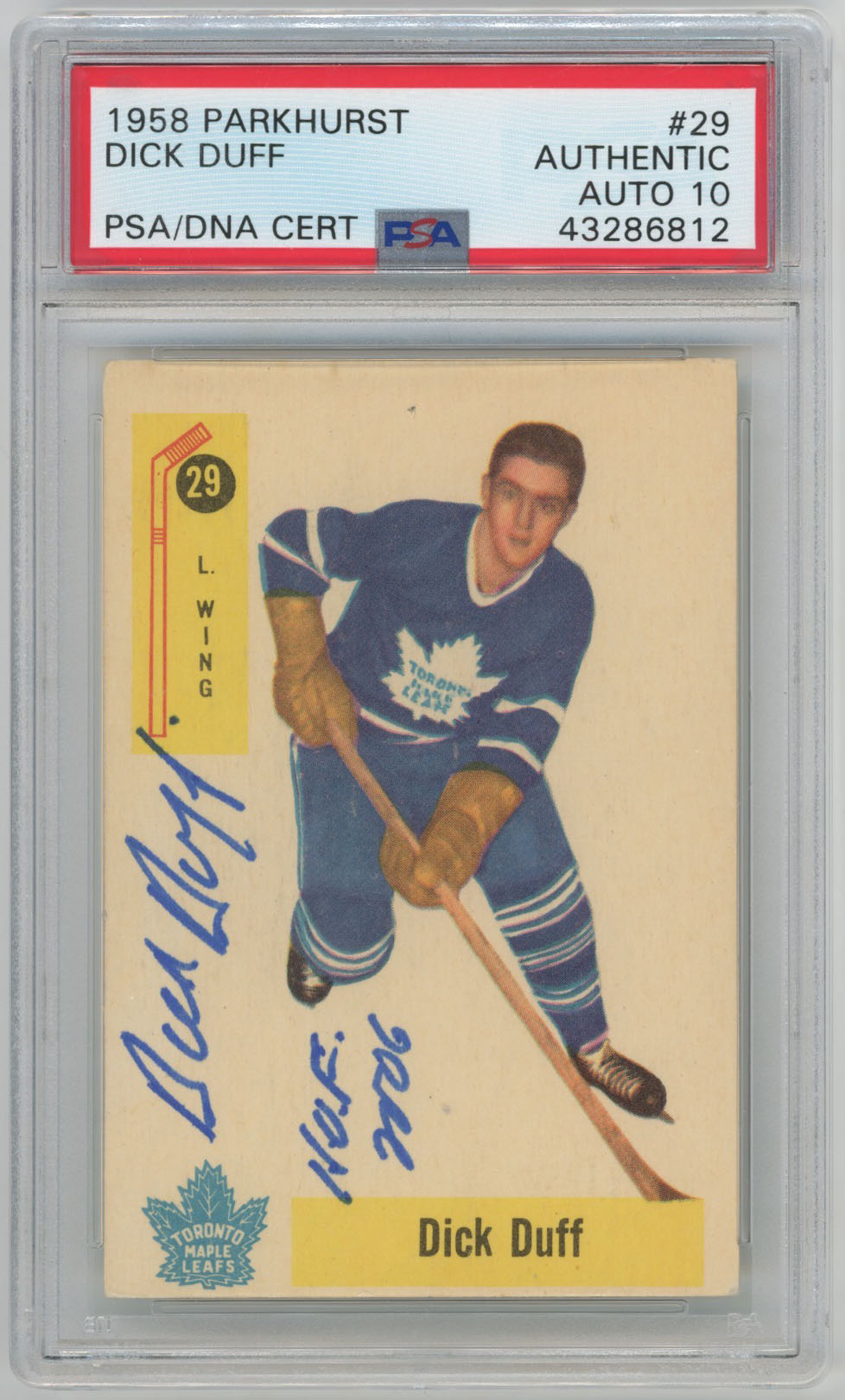 1958 Parkhurst 29 Dick Duff Signed Card PSA 10 (auto)