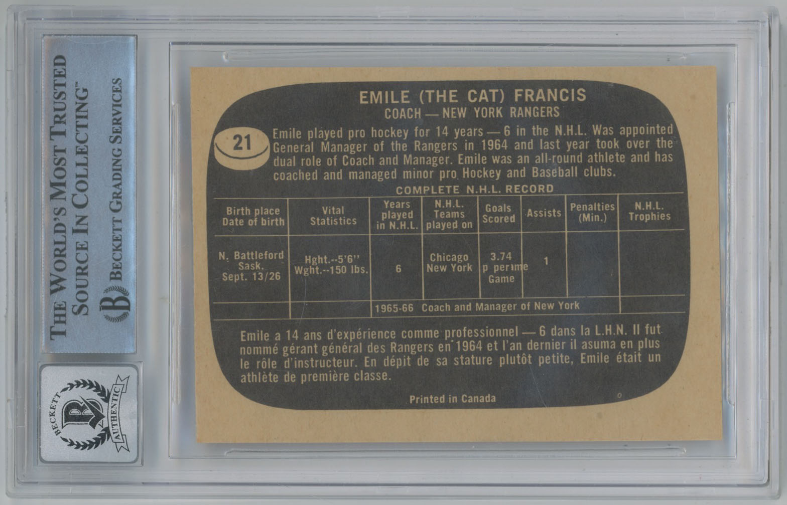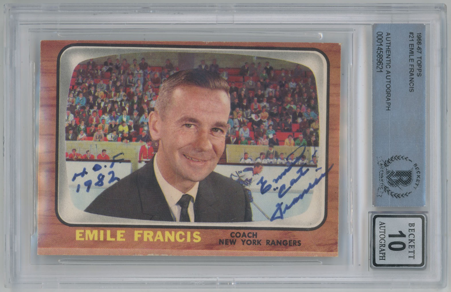 1966 Topps 21 Emile Francis Signed Rookie Card Beckett RC Beckett 10 (auto)