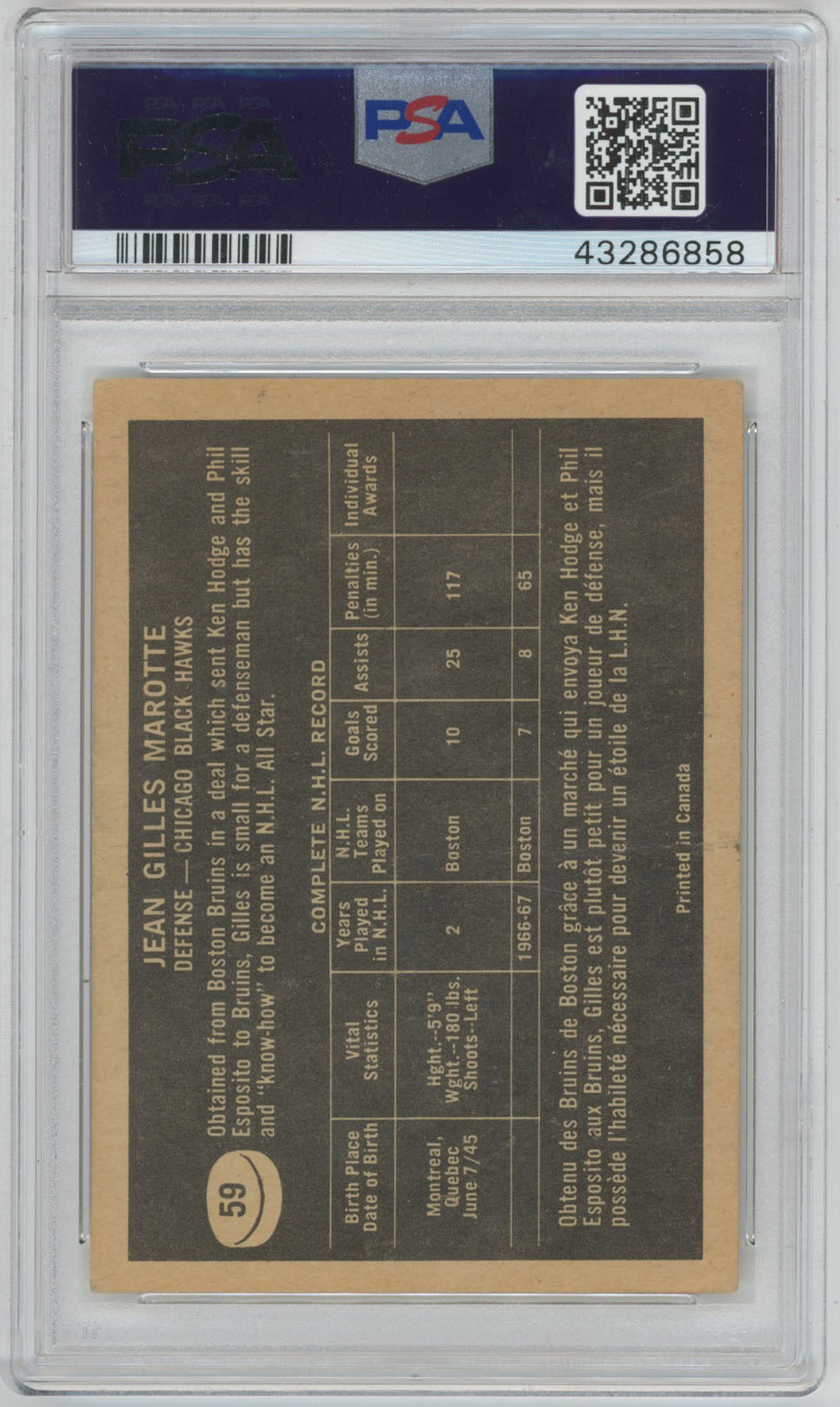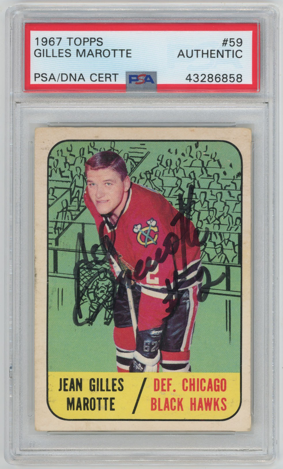 1967 Topps 59 Gilles Marotte Signed Card PSA Slabbed Blackhawks