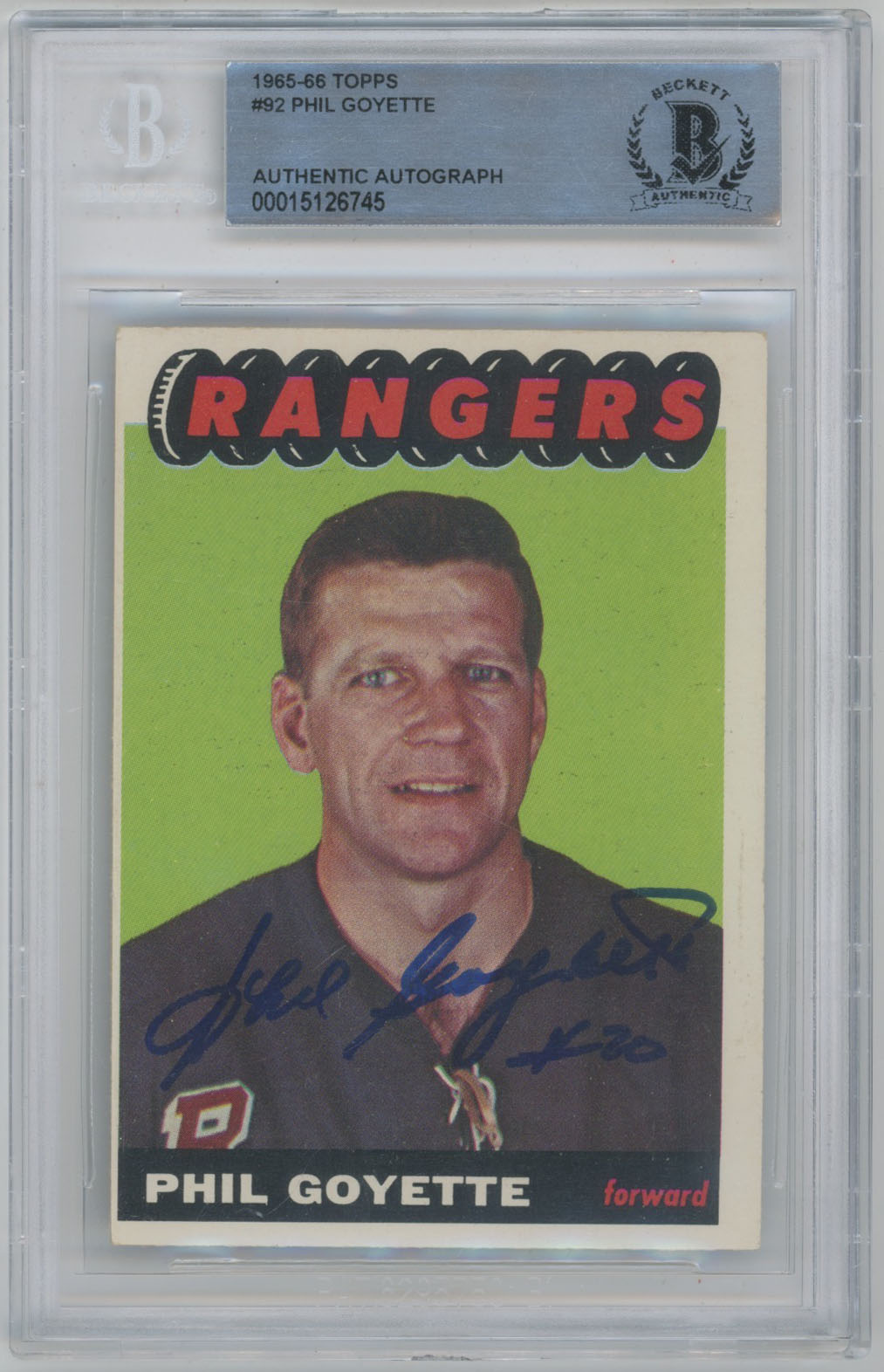 1965 Topps 92 Phil Goyette Signed Card Beckett Slabbed Slabbed