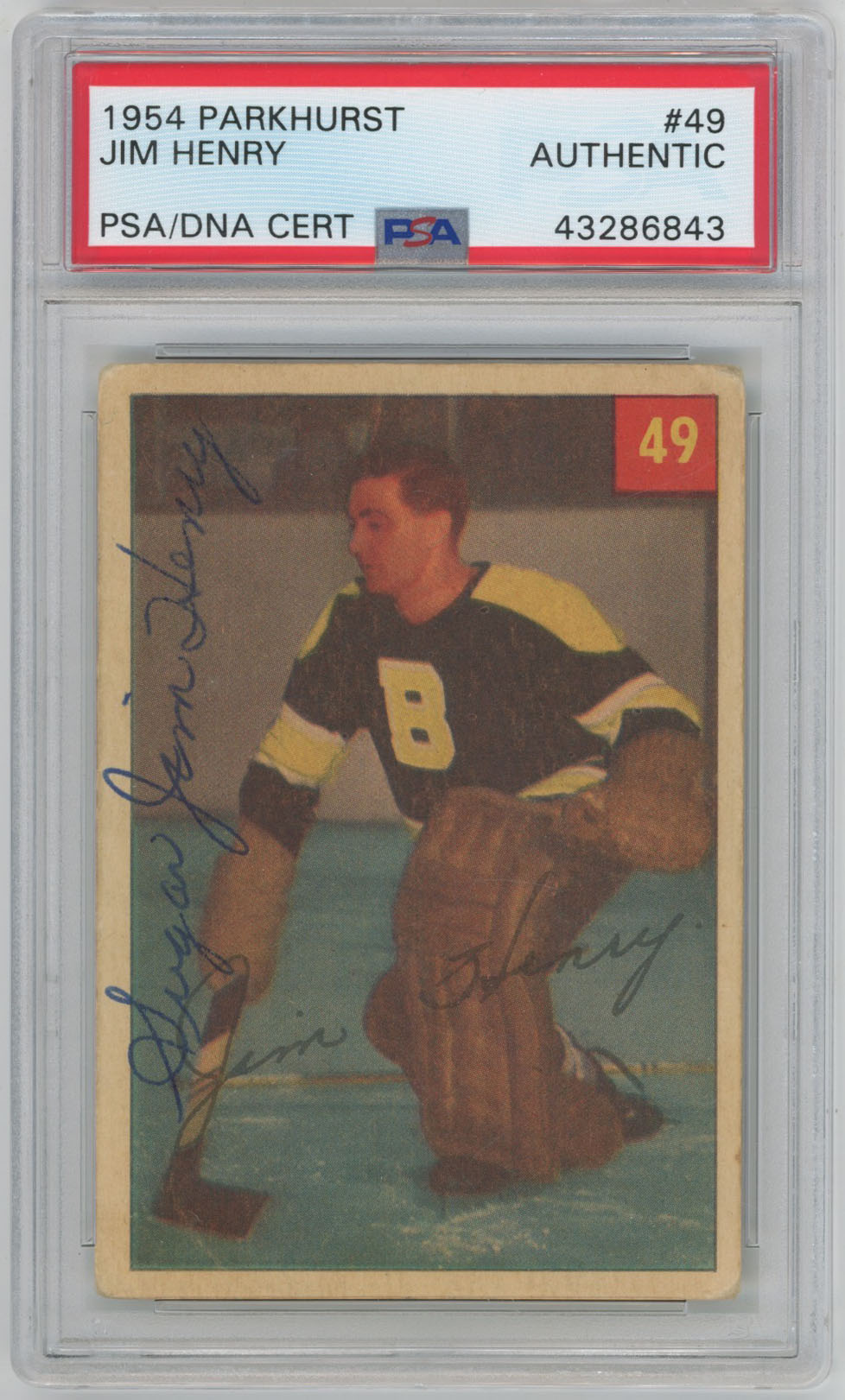 1954 Parkhurst 49 Sugar Jim Henry Signed Card PSA Slabbed
